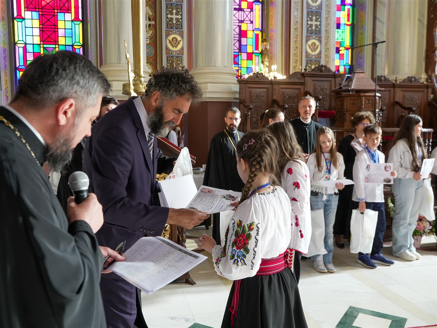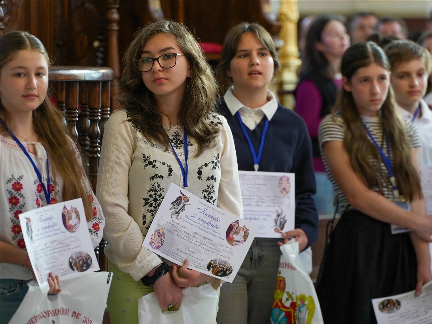 În același timp, arătăm gratitudine față de Preafericitul Patriarh, Ministerul Învățământului, și îndeosebi mamelor și profesorilor acestor copii care au devenit ”apostoli tineri ai Învierii” către noi toți, slujitori, părinți, cadre didactice și o mulțime de voluntari.