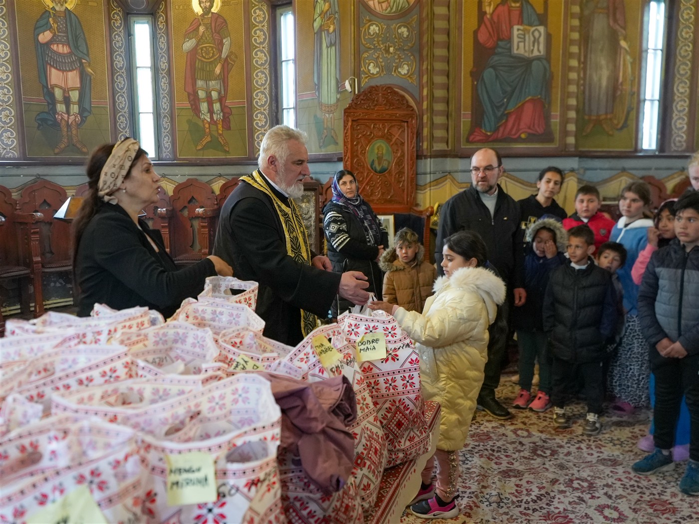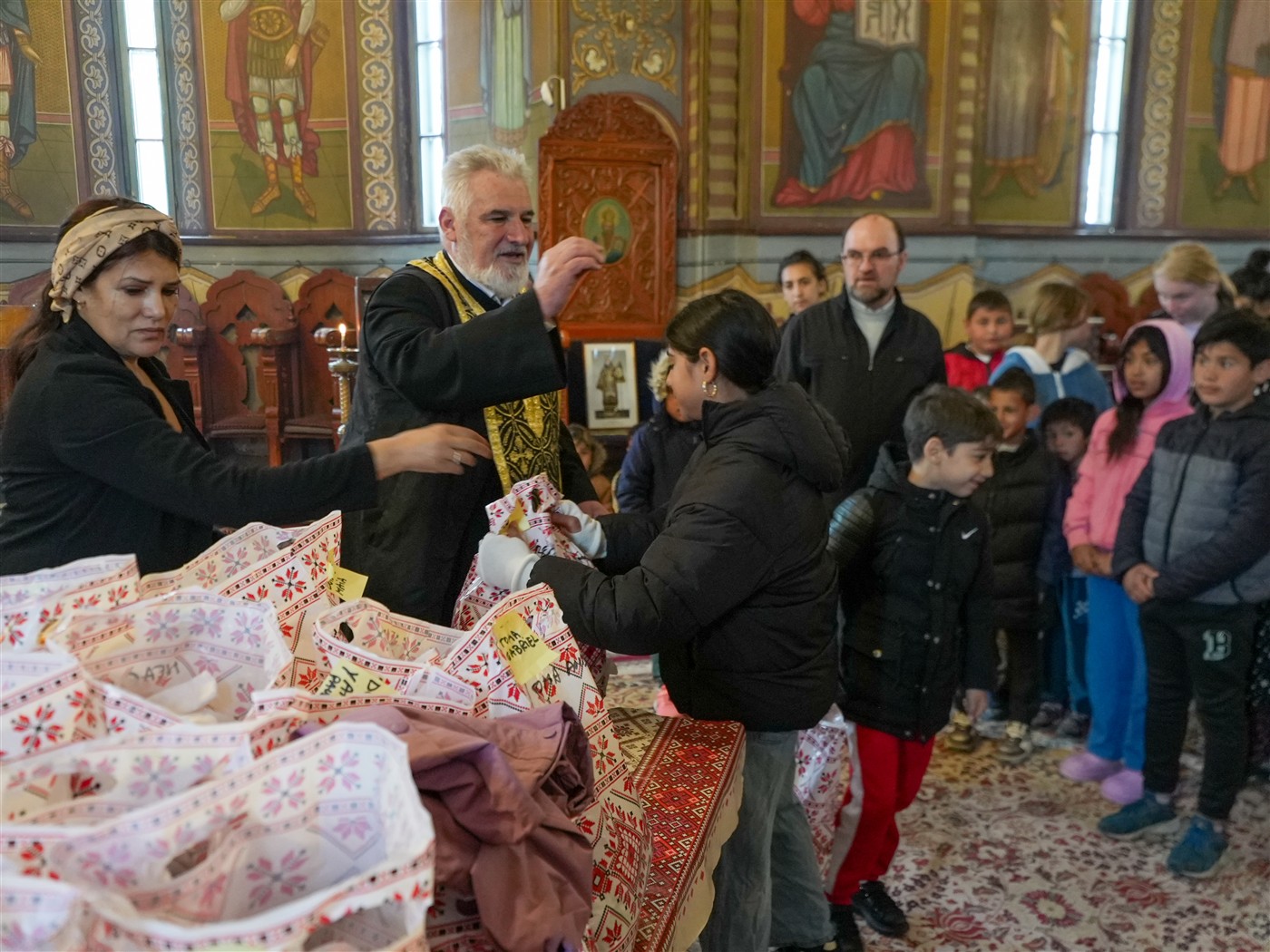 Peste 200 de copii din comunităţile parohiale din acest protopopiat au primit îmbrăcămite, încălţămite şi alte daruri pentru Sfintele Paşti.