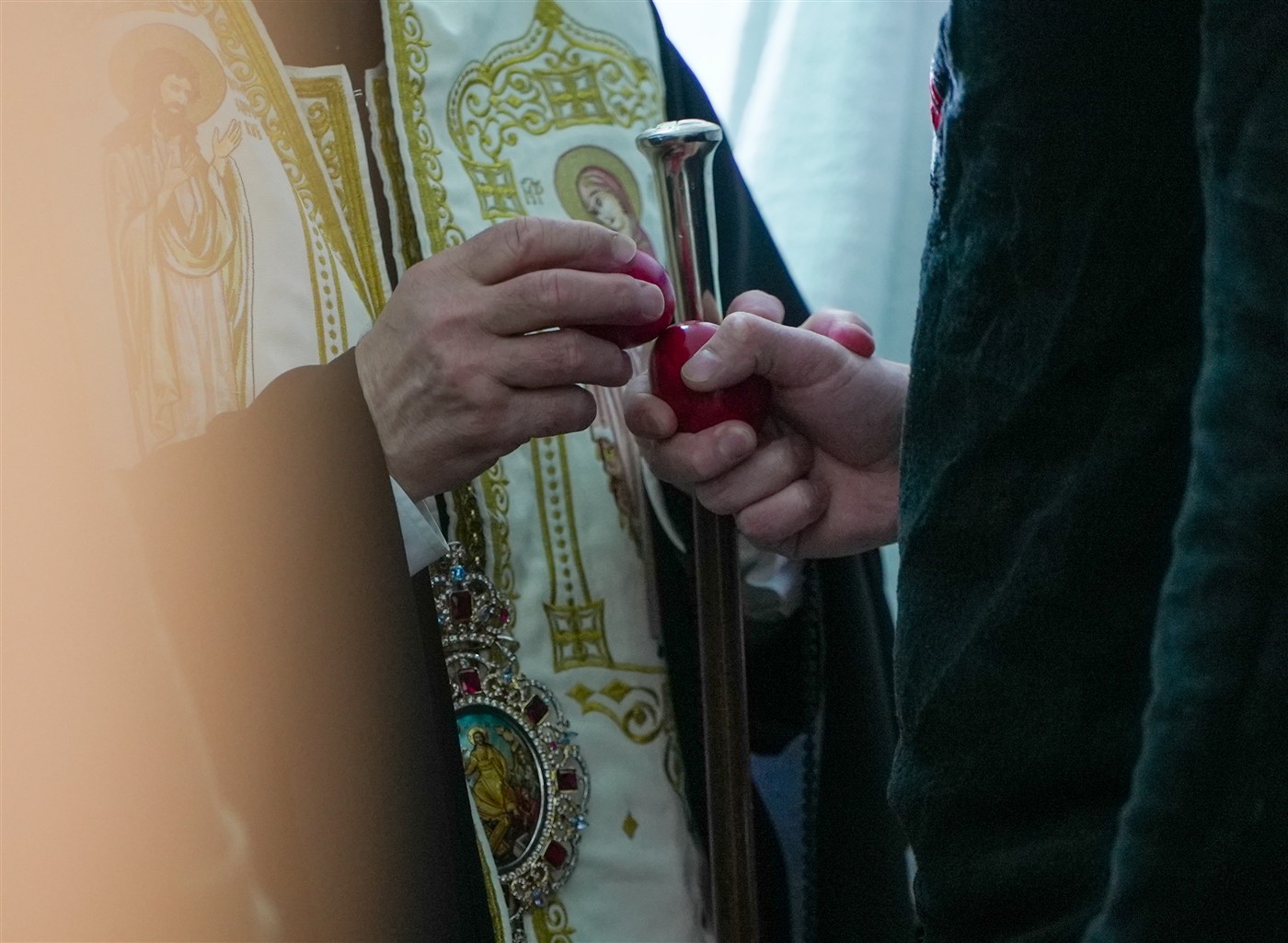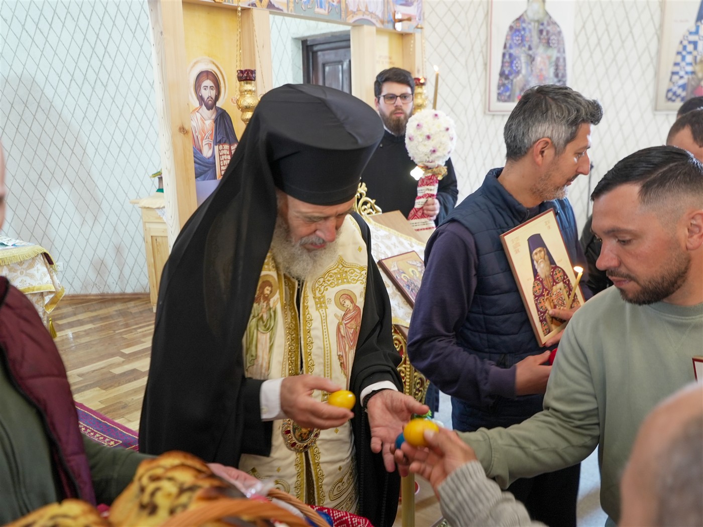 După tradiţie, Înaltpreasfinţia Sa a împărţit daruri pascale celor prezenţi, a ciocnit cu ei ouă roşii şi i-a întărit duhovniceşte în această mare zi a creştinătăţii.