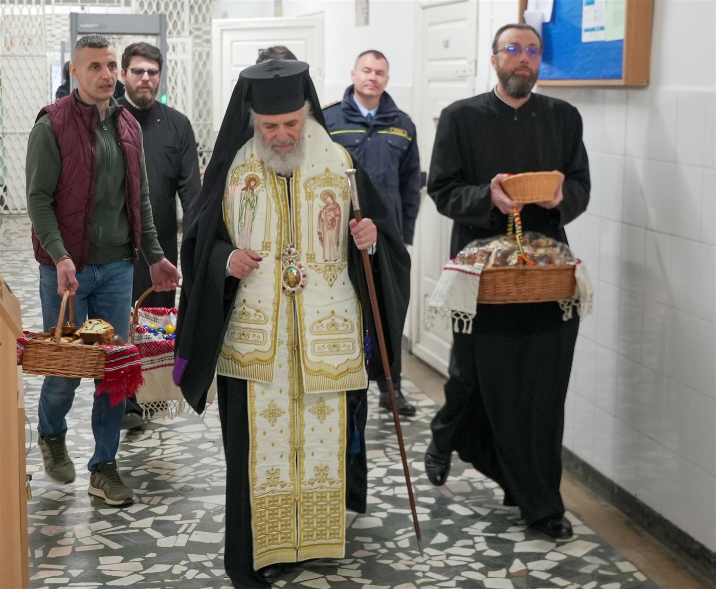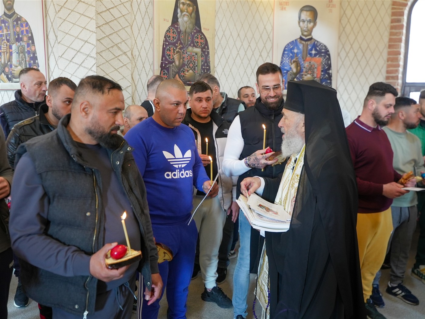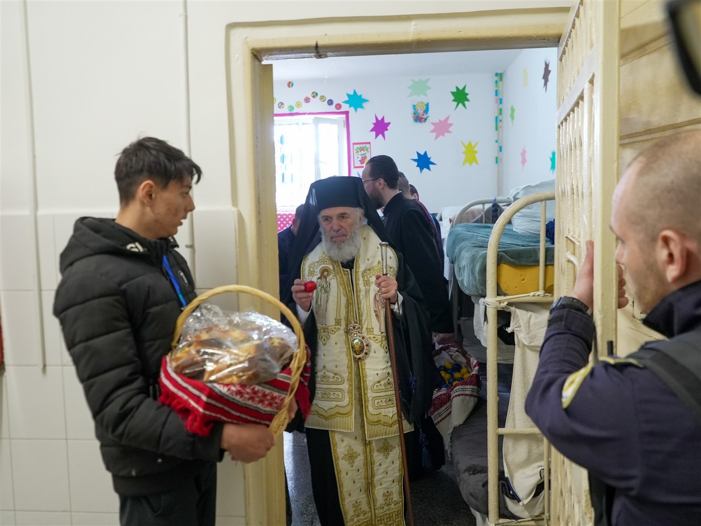 Programul a continuat cu vizitarea de către Părintele Arhiepiscop a creştinilor în celulele penitenciarului, pentru a le aduce tuturor bucuria Învierii, a-i binecuvânta, a ciocni ouă roşii cu aceştia şi pentru a le oferi daruri pascale.