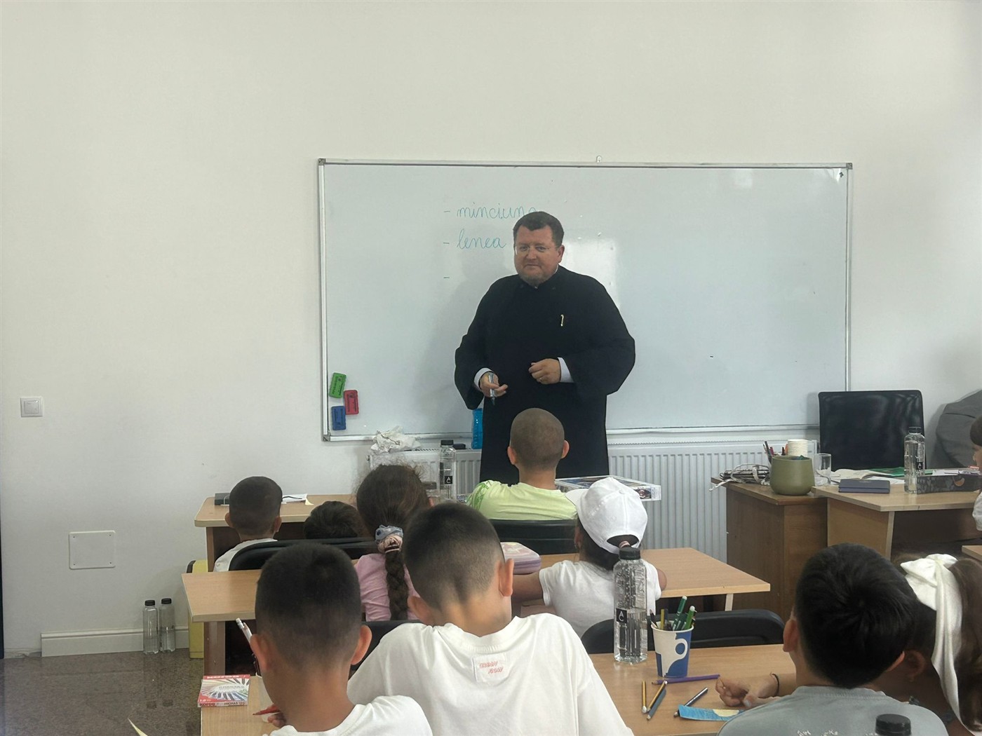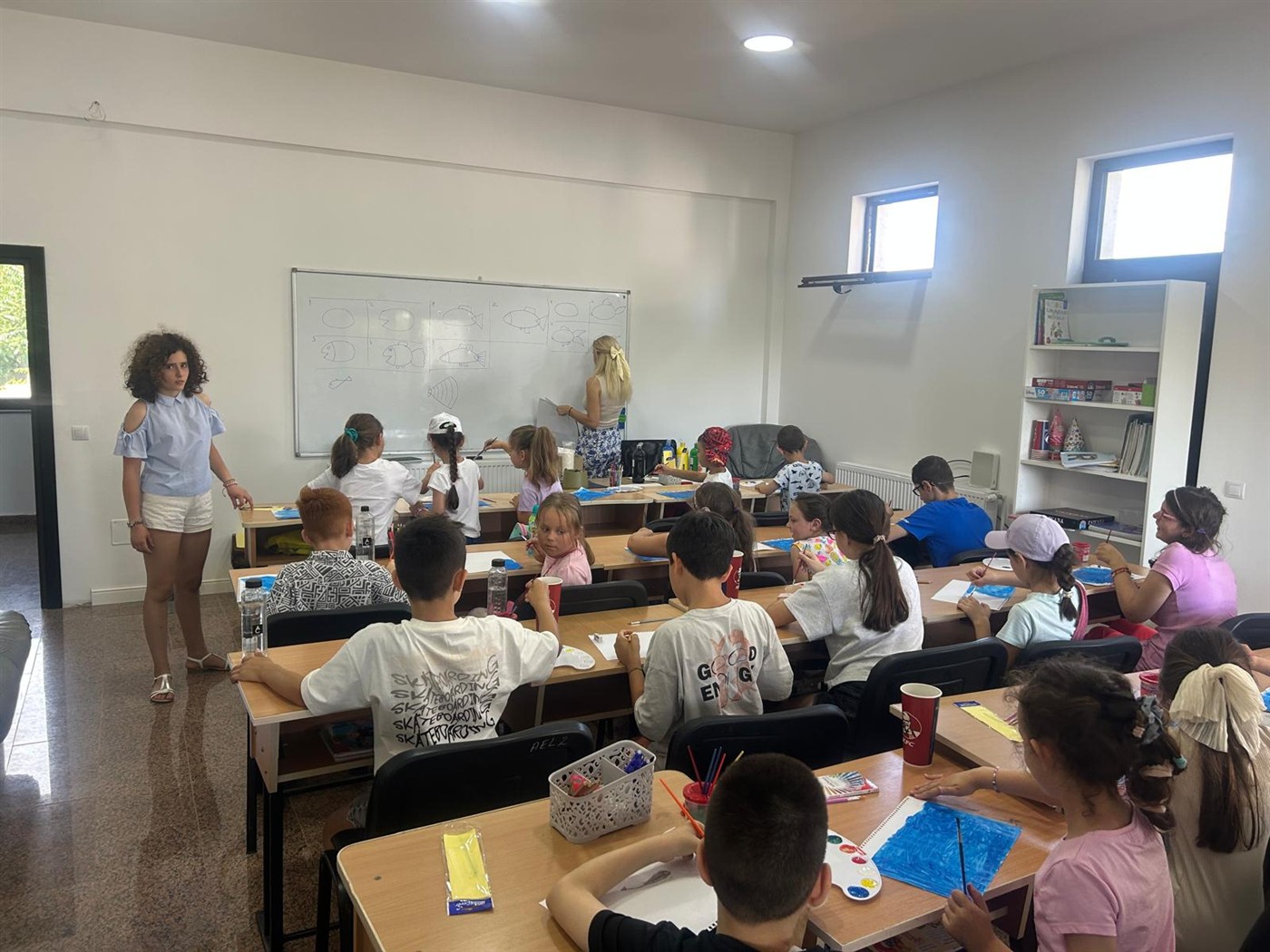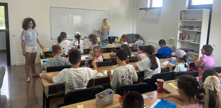 După rugăciunea de dimineaţă din biserică, fiecare copil, după puterea varstei sale, sub supravegherea unor oameni dedicaţi şi minunați din parohie, au făcut teme de vacanță, au rezolvat fișe de lucru care să le păstreze proaspăt ceea ce au învățat în anul școlar care s-a încheiat, au descoperit cuvinte noi, au exersat limba engleză și și-au manifestat liber talentul creator împodobind cu desene semnele de carte pe care ei înșiși le-au confecționat.