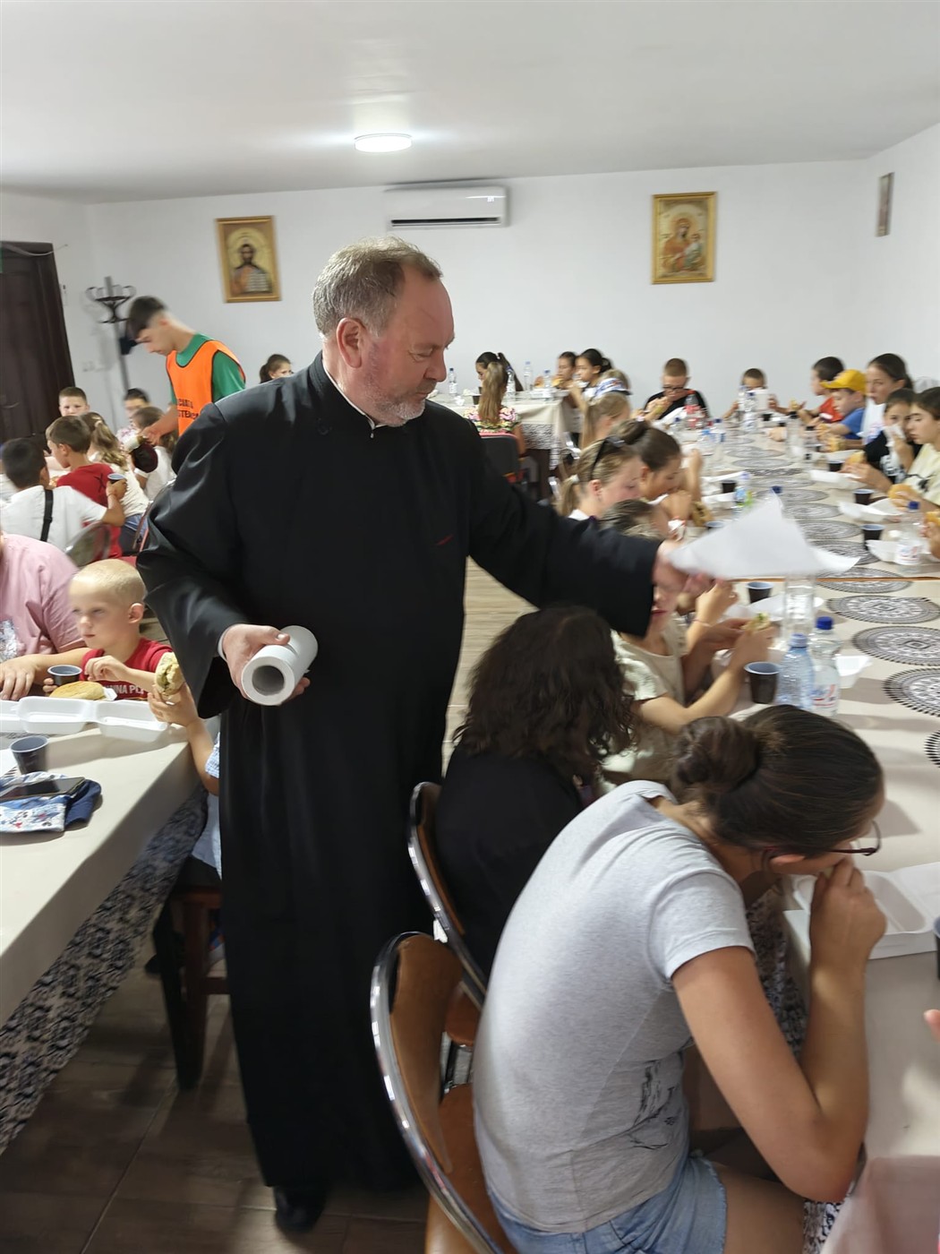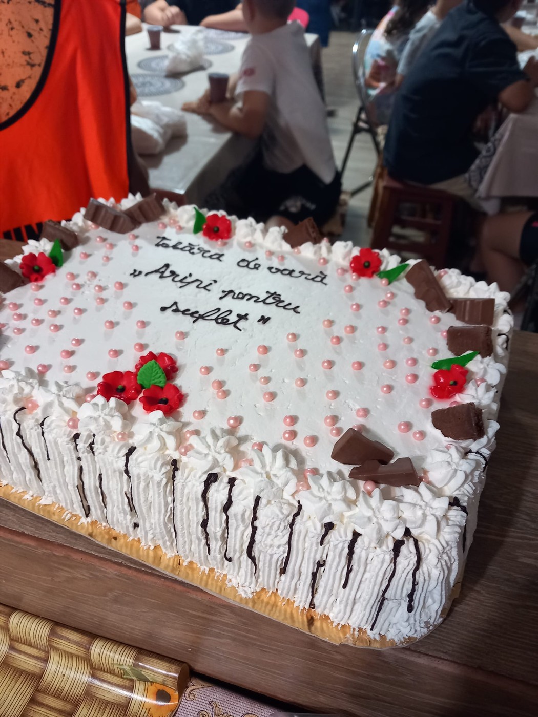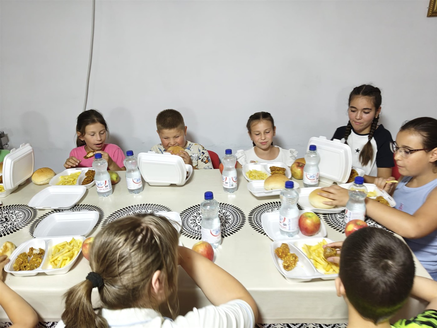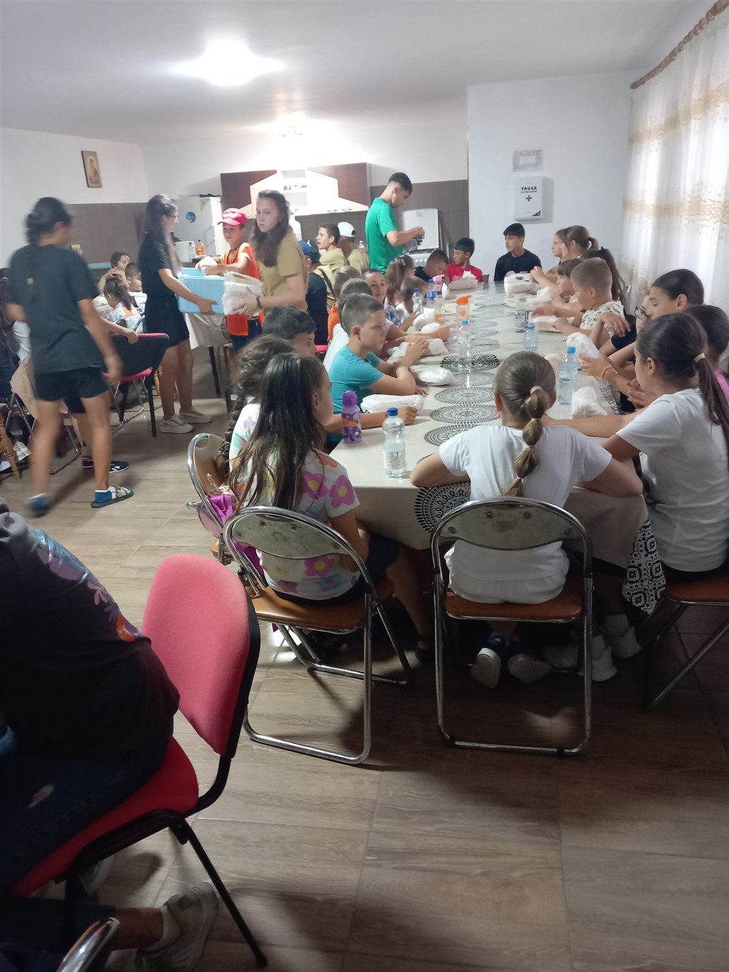 Momentele în care a fost servită masa au devenit și ele prilejuri de comuniune și surprize, în care mâncarea diversificată şi cei 50 de litri de limonadă zilnic au refăcut energia şi au redat pofta de joacă. Nu au lipsit cântecele de „La mulți ani” pentru sărbătoriți și un gest deosebit al unor mame voluntare care au adus două torturi uriașe pentru toți participanții.