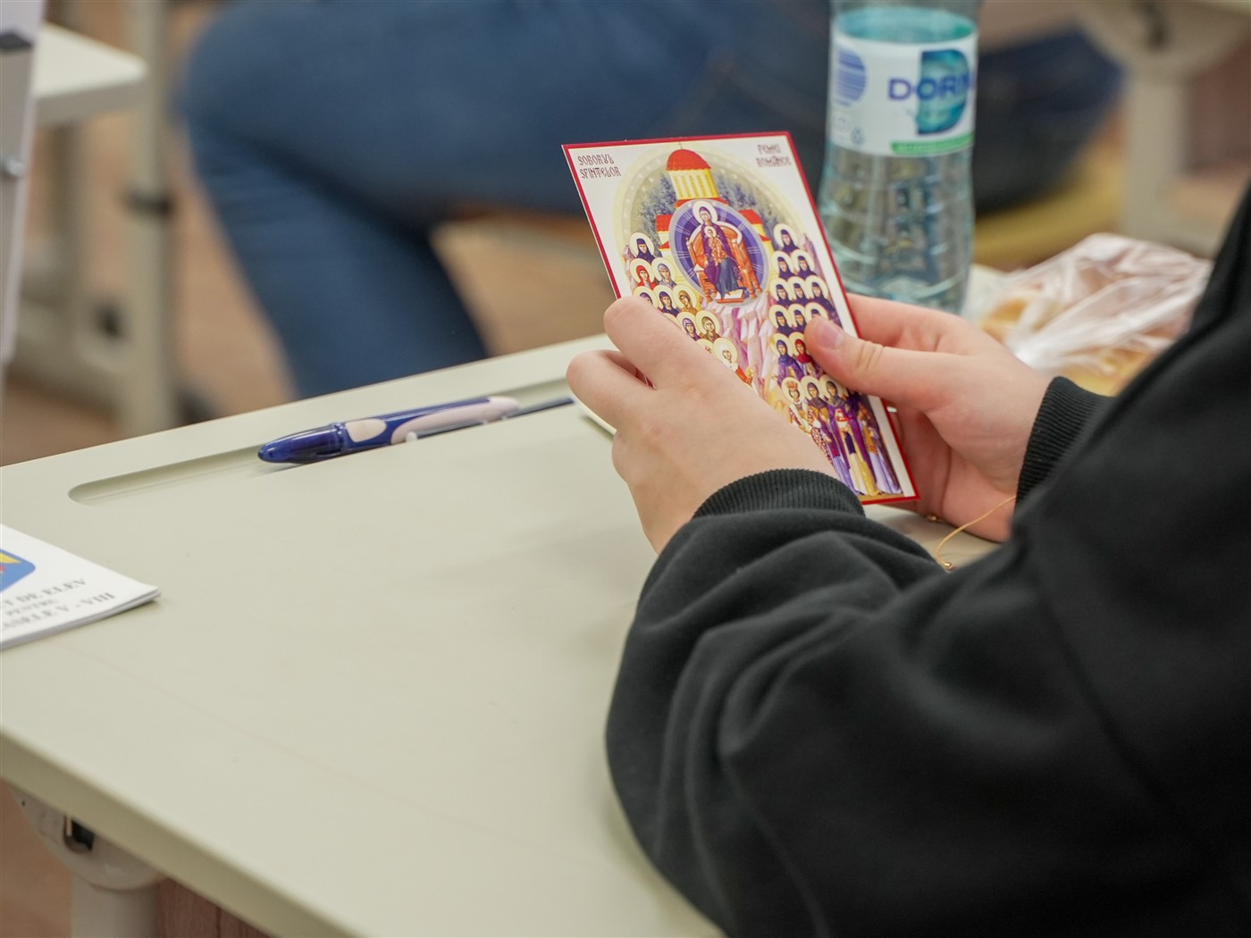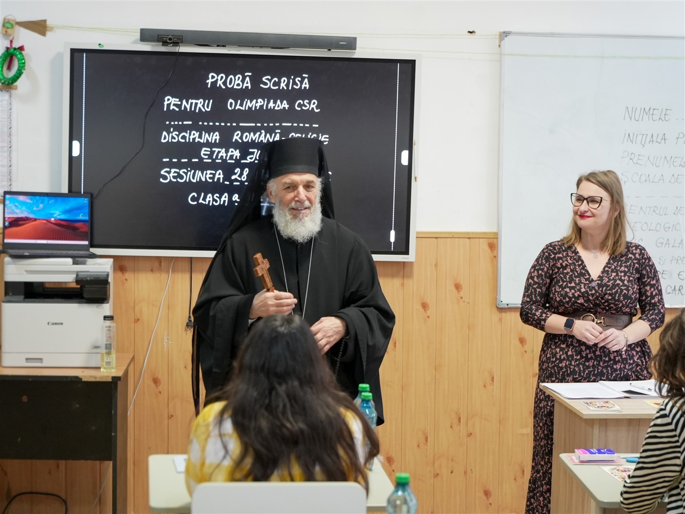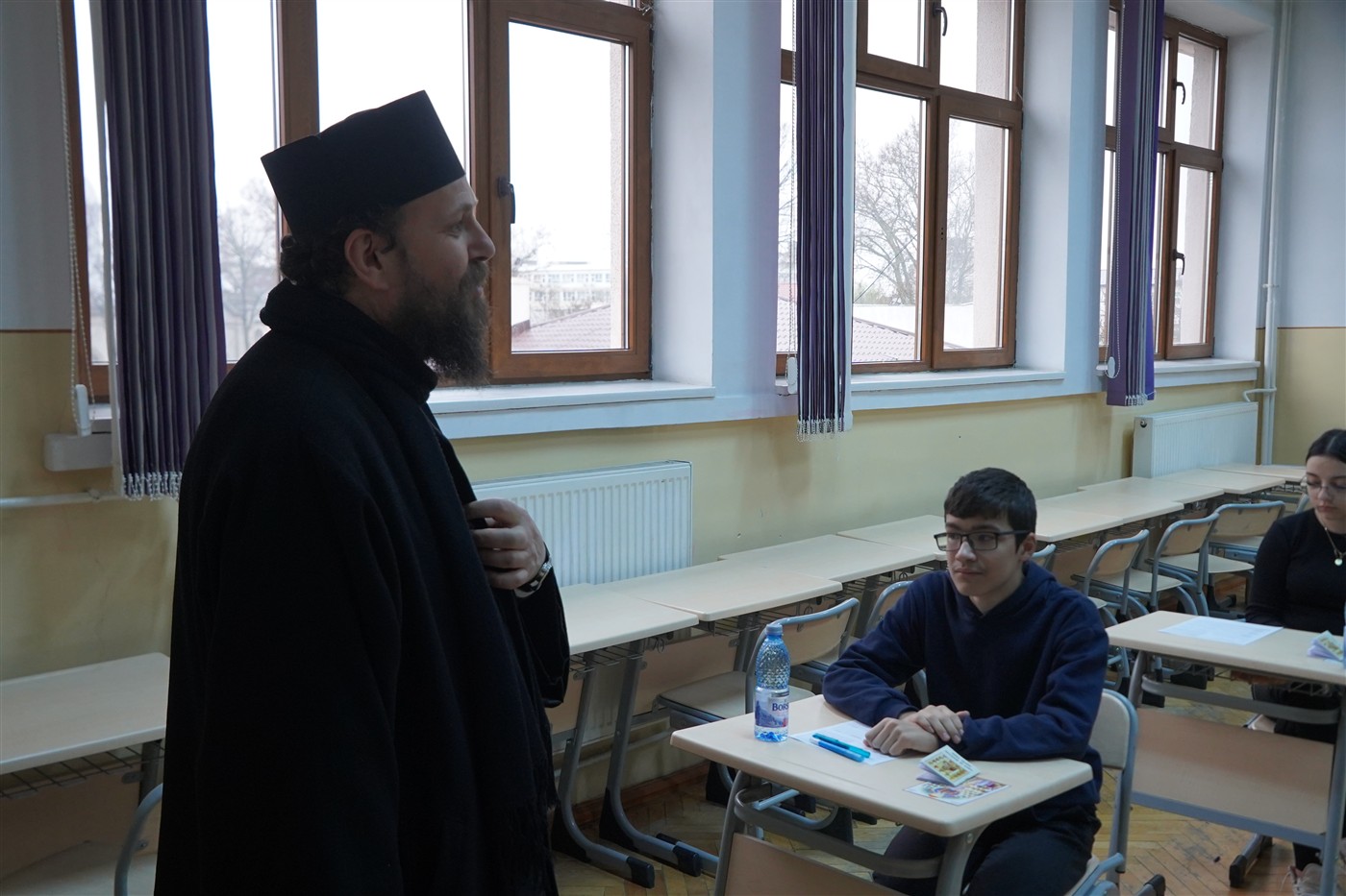 Delegatul Înaltpreasfinţitului Părinte Arhiepiscop Casian, preotul Horaţiu Moldovan a trecut pe la sălile de concurs pentru a-i susţine pe tinerii participanţi şi pentru a le oferi acestora cărţi de rugăciune, iconiţe, metaniere şi alte daruri.