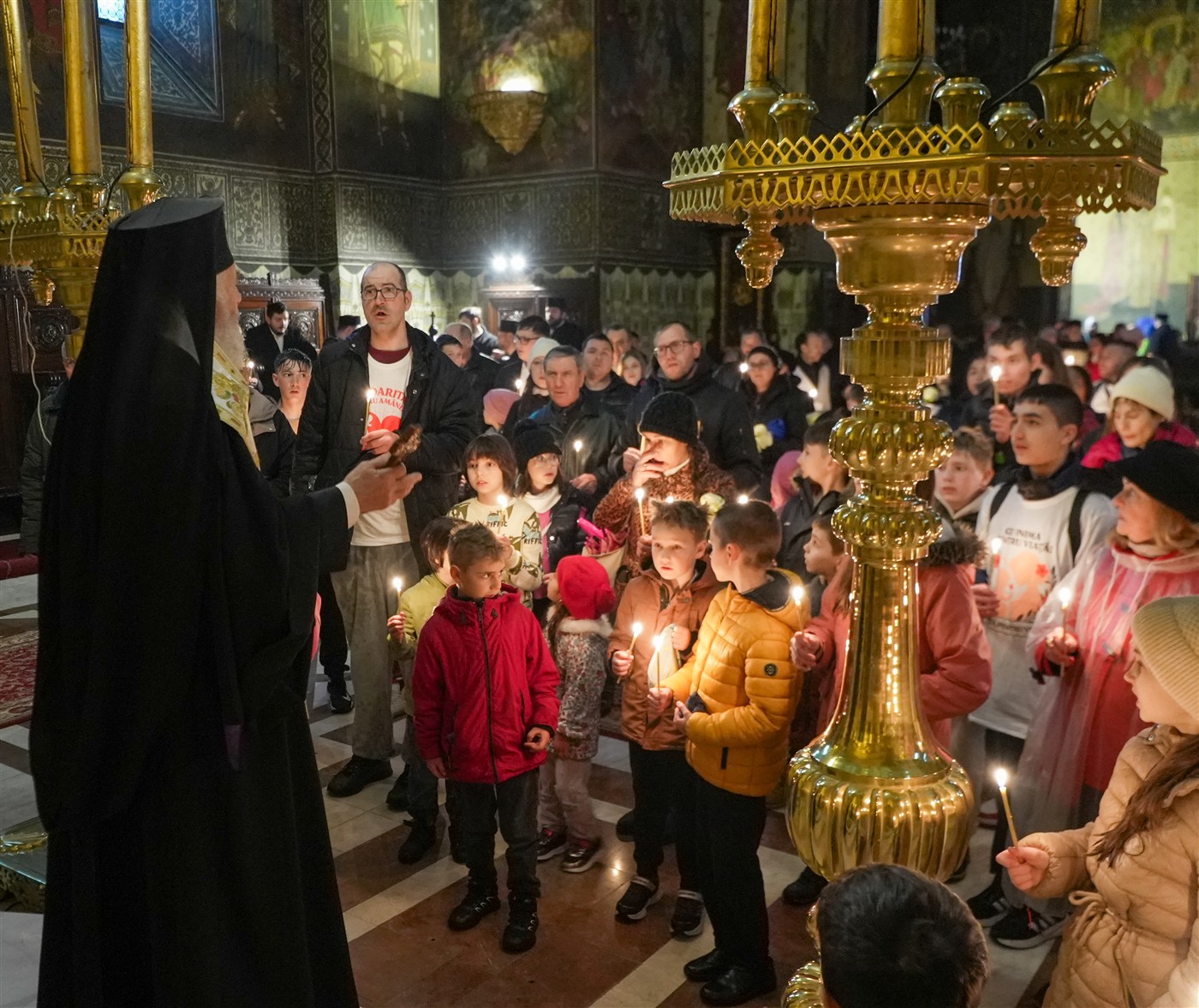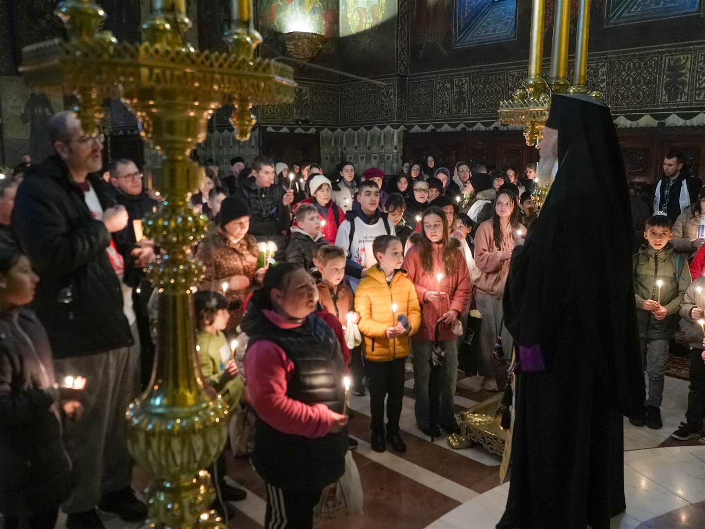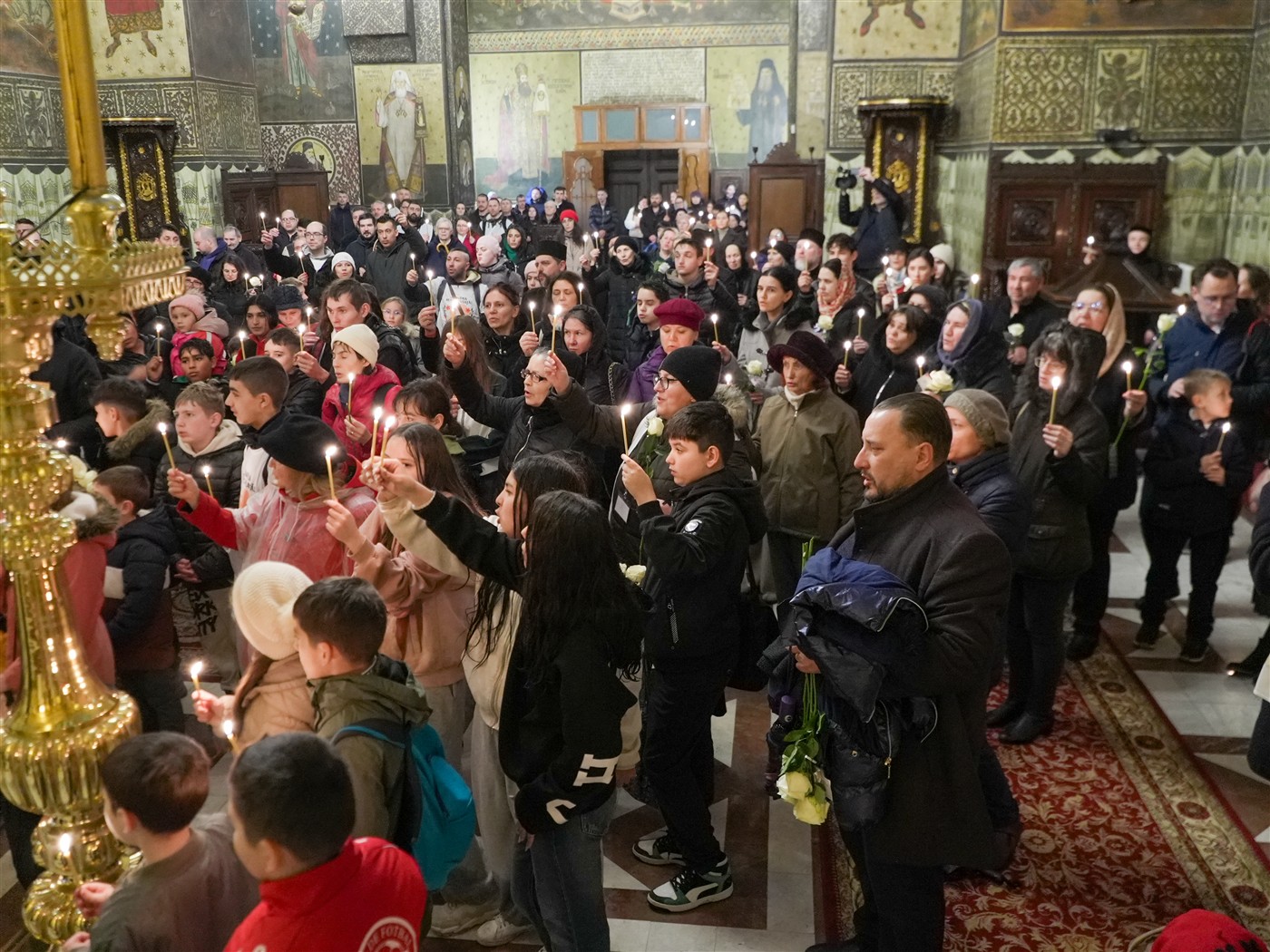 Tinerii şi copiii prezenti au cântat imnuri închinate Maicii Domnului, au aprins lumânări de la ierarhul locului şi s-au bucurat de cadrul generos şi primitor al acestui locaş de rugăciune.