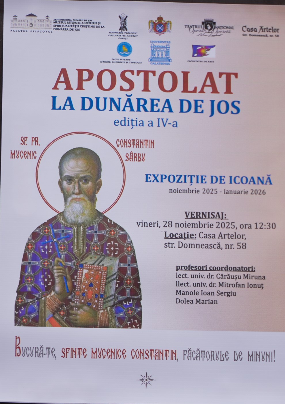 În acest context al sărbătorii s-a desfăşurat astăzi, 28 noiembrie, la Casa Artelor din municipiul Galaţi, cea de-a patra ediţie a proiectului expoziţional intitulat ”Apostolat la Dunărea de Jos”.
