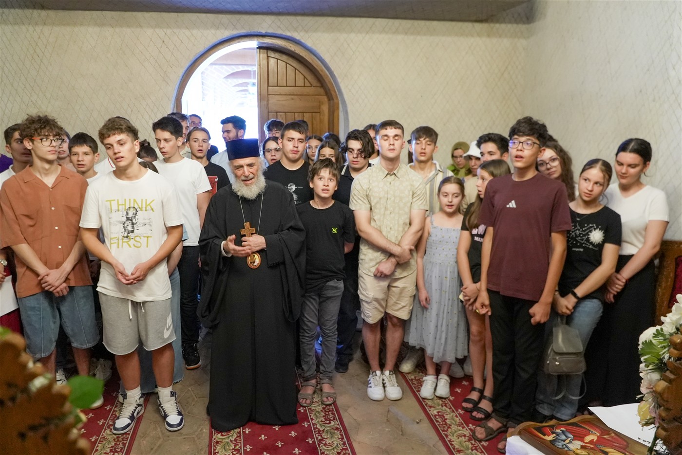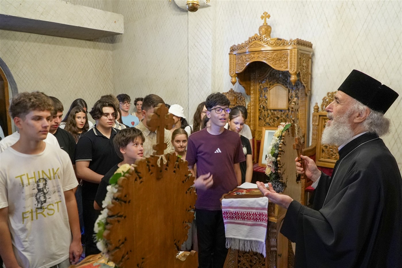 Împreună cu ierarhul locului, toți copiii participanţi împreună cu însoţitorii lor s-au rugat în Capela ”Sf. Pantelimon” din cadrul Așezământului eparhial şi au primit cuvânt duhovnicesc de învăţătură.