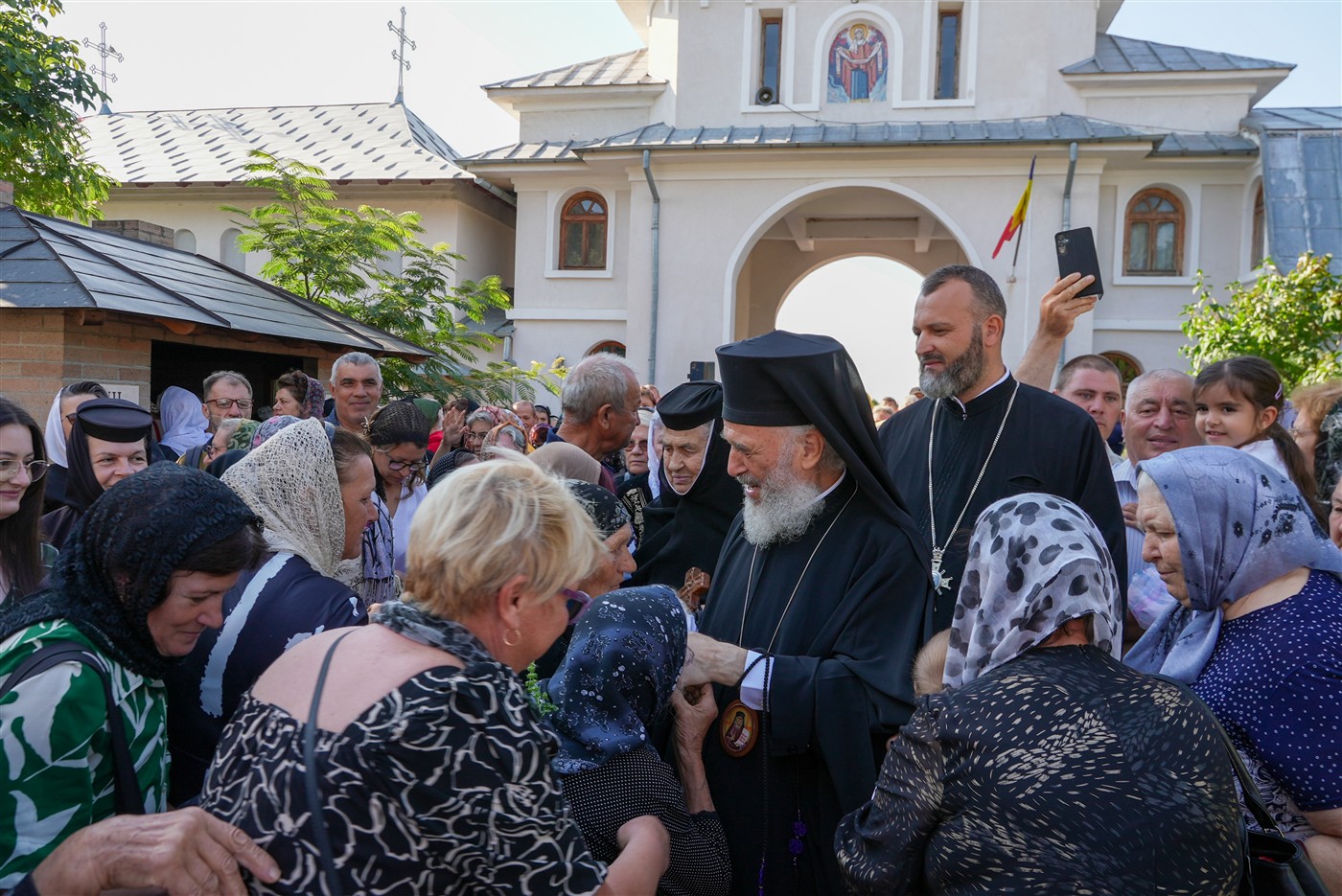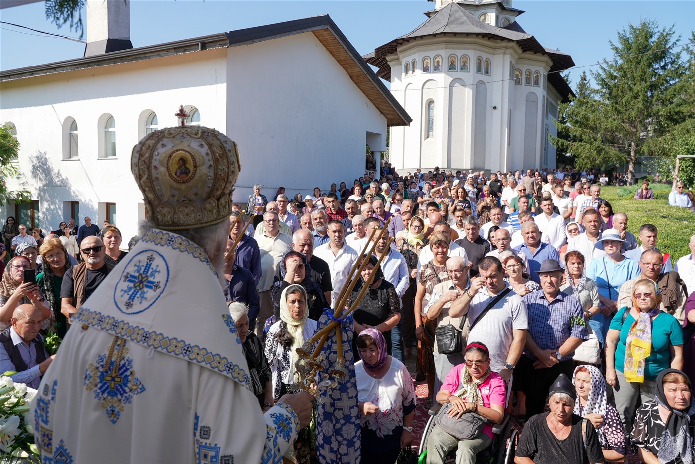 La slujbă au participat copii din localităţile învecinate, obştea monahală şi numeroşi credincioşi veniţi din multe zone ale eparhiei pentru a se ruga Maicii Domnului, ocrotitoarea spirituală a mănăstirii şi Maica cea mult iubitoare a întregii lumi.