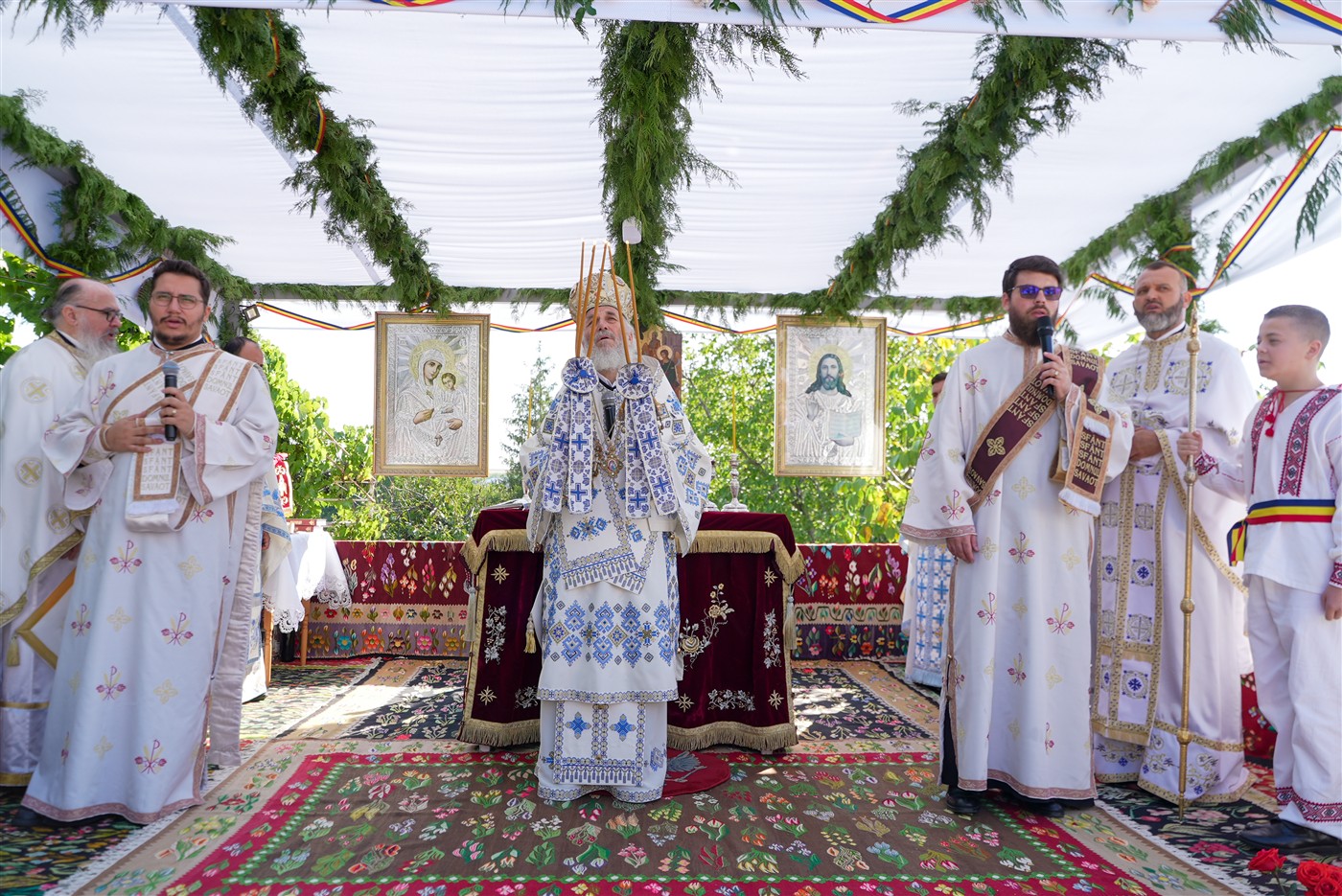 Cu acest prilej, Înaltpreasfinţitul Părinte Casian, Arhiepiscopul Dunării de Jos, a săvârşit Sfânta Liturghie, împreună cu un sobor de ieromonahi, preoţi şi diaconi, pe un podium special amenajat în curtea interioară a mănăstirii în apropierea impunătorului locaş de cult construit în stil ştefanian şi împodobit cu frumoase mozaicuri exterioare.