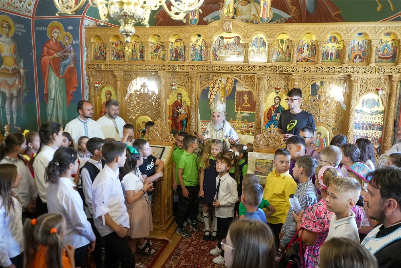 La momentul cuvenit, mulţi copii şi vieţuitoarele mănăstirii au fost împărtăşiţi de ierarhul locului cu Sfintele Taine.