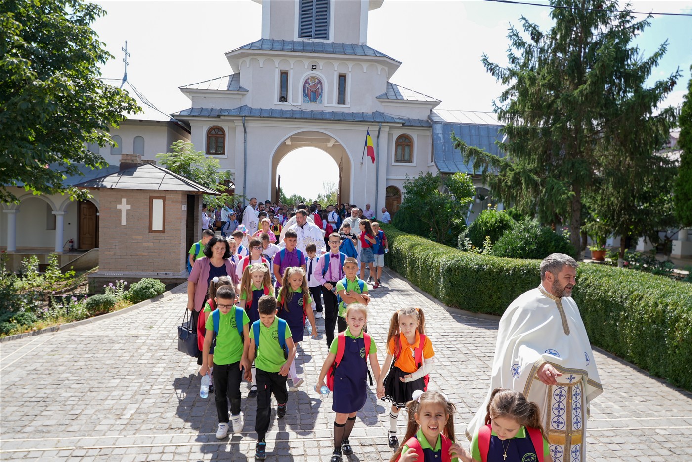 La hramul acestei mănăstiri a continuat programul eparhial „Hristos în şcoală“ pentru 70 de copii din parohiile protopopiatului Covurlui, care au primit din partea Părintelui Arhiepiscop ghiozdane complet echipate pentru noul an școlar.
