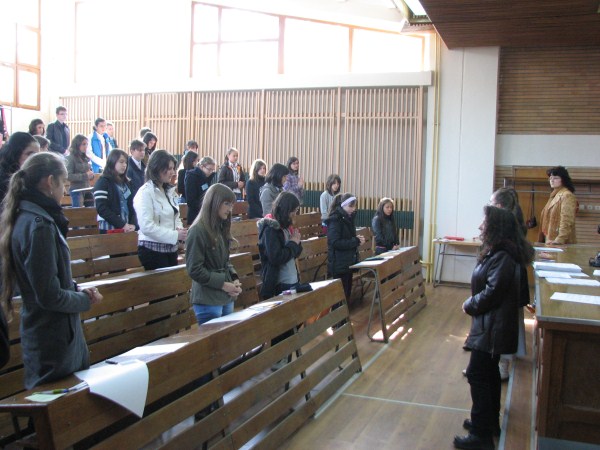 După rostirea în cor a rugăciunii „Tatăl nostru”, a urmat apoi proba scrisă, găzduită în Amfiteatrele Facultăţii de Mecanică, din cadrul Universităţii „Dunărea de Jos” din Galaţi.
