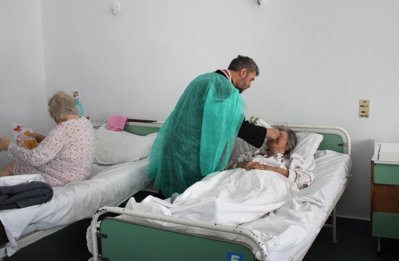 În cooperare cu conducerea spitalului, bolnavii au fost cercetaţi la paturile lor, fiind încurajaţi şi binecuvântaţi să poată purta pe mai departe crucea suferinţei lor.