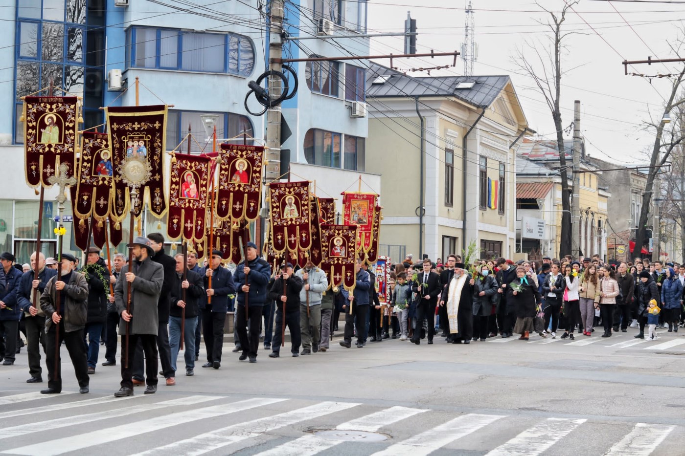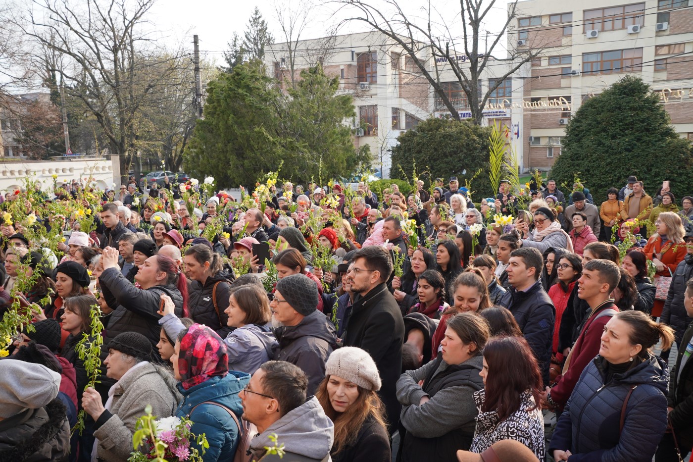 În continuare, în oraşul de reşedinţă al Arhiepiscopiei Dunării de Jos, foarte mulţi gălăţeni, de la copii şi tineri, până la vârstnici sau chiar persoane cu dizabilităţi s-au adunat în faţa bisericii „Vovidenia“ pentru a participa la tradiţionala procesiune de Florii.