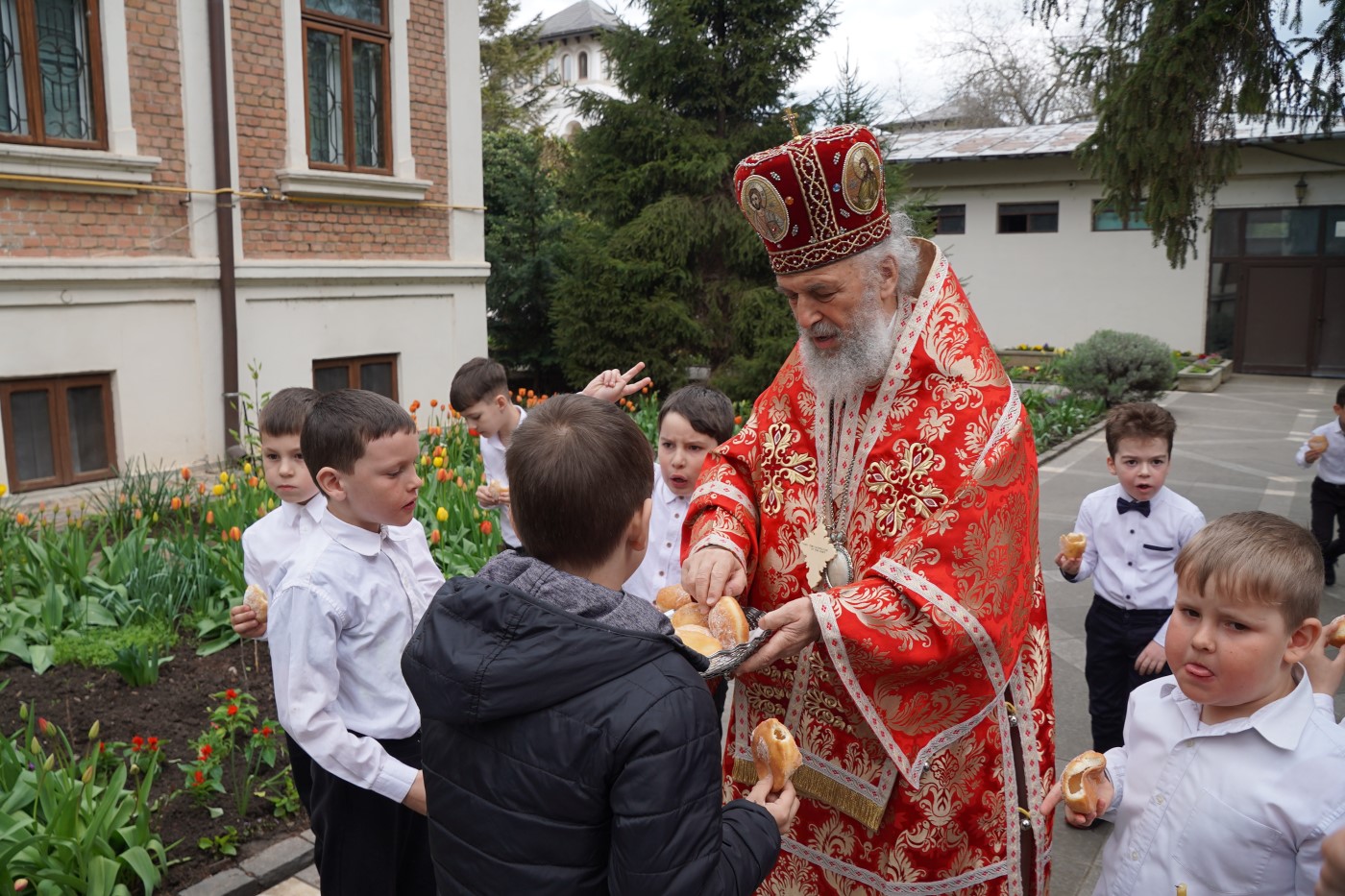 De la Catedrala arhiepiscopală, copiii şi credincioşii prezenţi la slujbă au mers împreună cu ierarhul locului în cadrul natural din curtea Reşedinţei arhiepiscopale unde le-au fost oferite daruri.