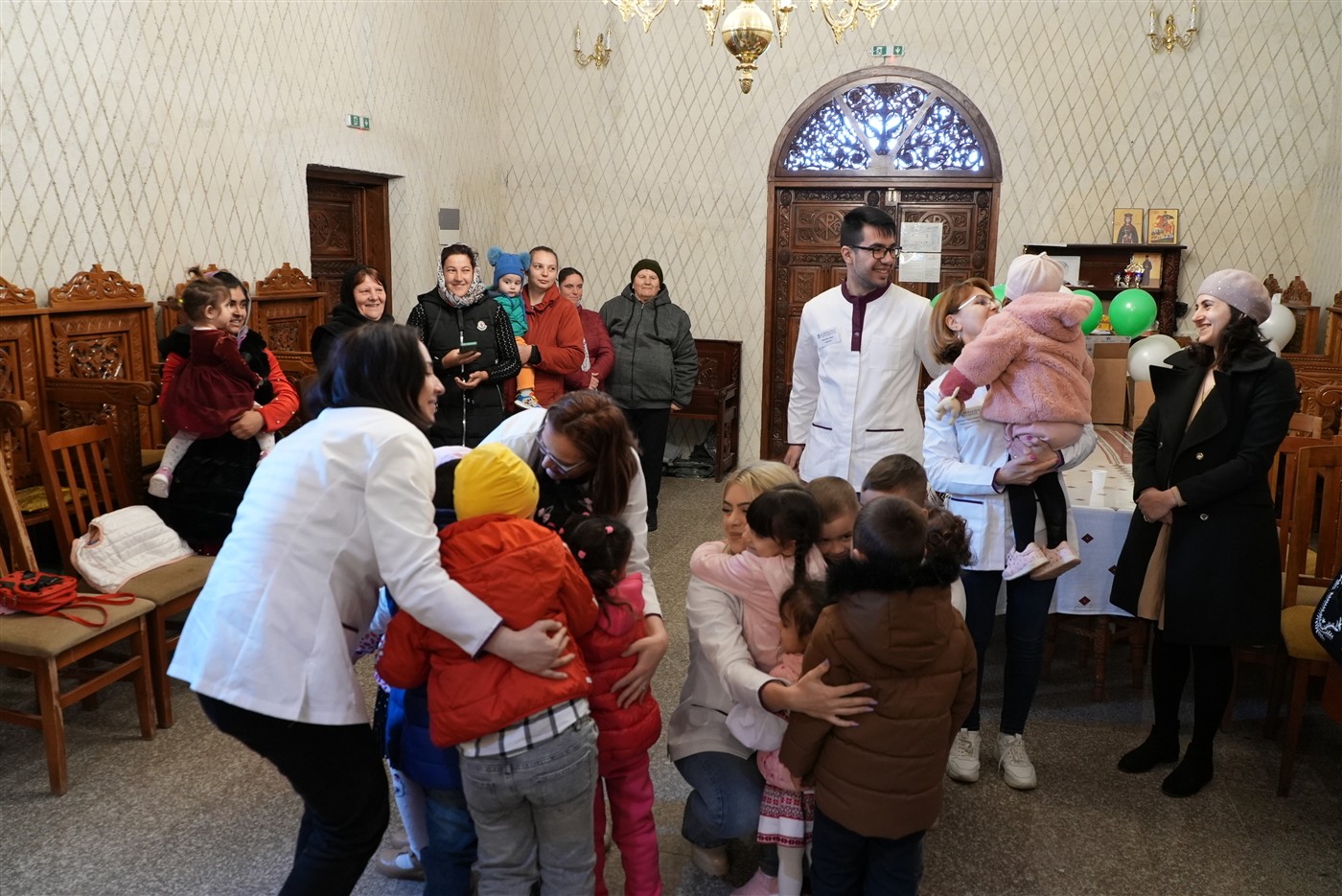 Copiii din cele două comunităţi parohiale au primit cu mare bucurie vizita preoţilor însoţiţi de profesori de la şcolile din zonă şi mai mulţi voluntari farmacişti din Galaţi.