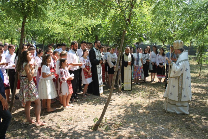 După Sfânta Liturghie, în curtea Bisericii s-a săvârsit slujba Paraclisului Maicii Domnului, cântat antifonic de tinerii participanţi la tabara.