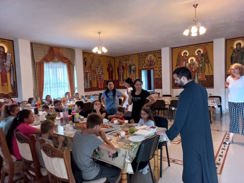 La orele prânzului, aceștia au fost așezați la masă în trapeza mănăstirii și serviți cu diferite produse de sezon, după care și-au continuat activitățile în parcul din incinta ansamblului monahal.
