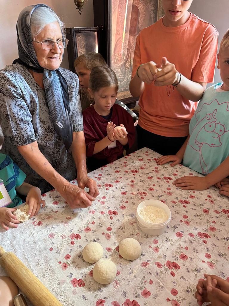 De asemenea, copiii au învățat de la femeile harnice din comitetul parohial cum se frământă și se coc prescurile, pâinea și colacii.