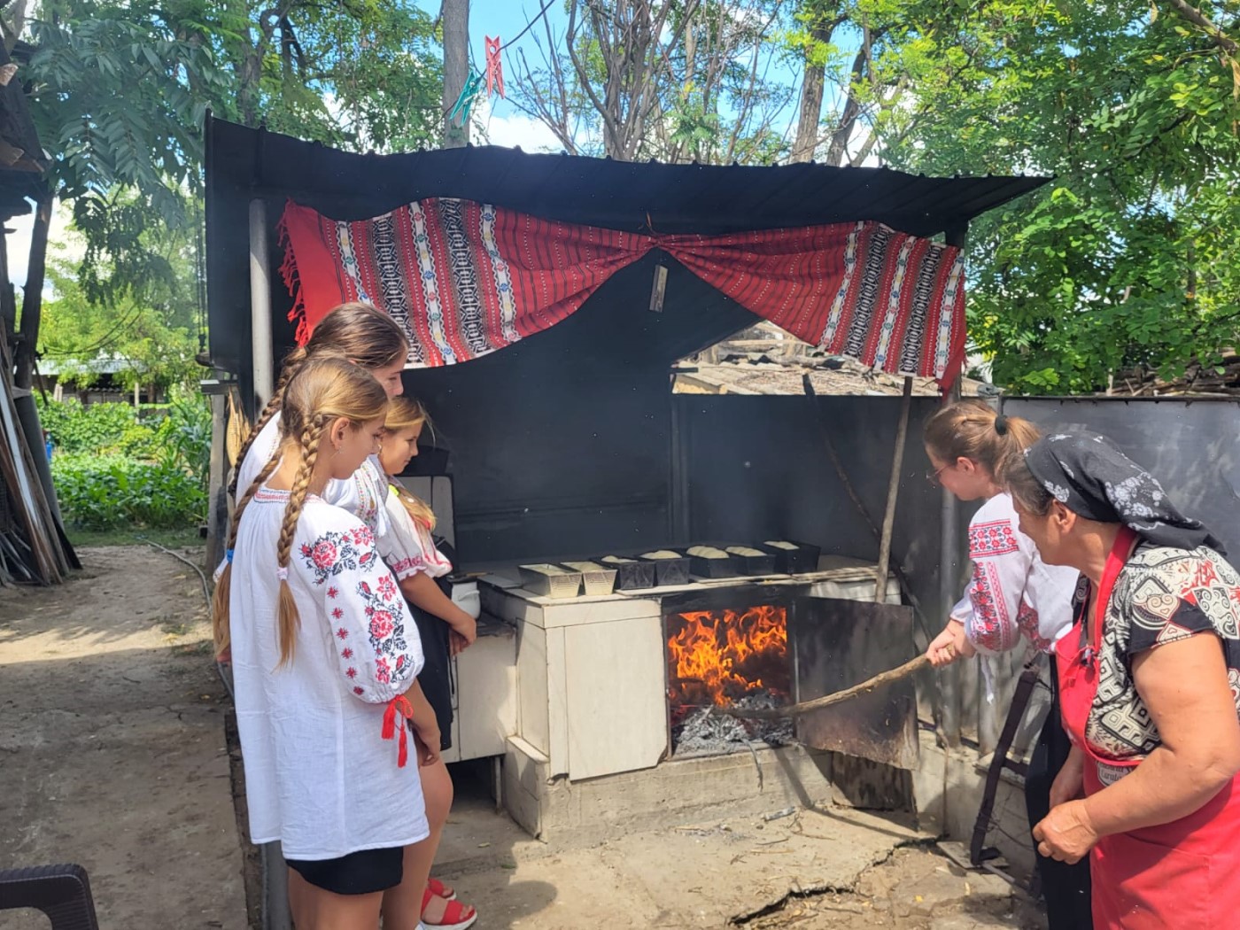 O altă activitatea deosebit de importantă, desfășurată pe parcursul zilelor de tabără a fost prepararea bucatelor tradiționale, gătite după rețete știute doar de bunicii satului. Astfel, domnișoarele participante au frământat pâinea în covată, au copt-o în cuptorul tradițional din lut şi au preparat diferite rețete de post, gătite la ceaun pe pirostrie.