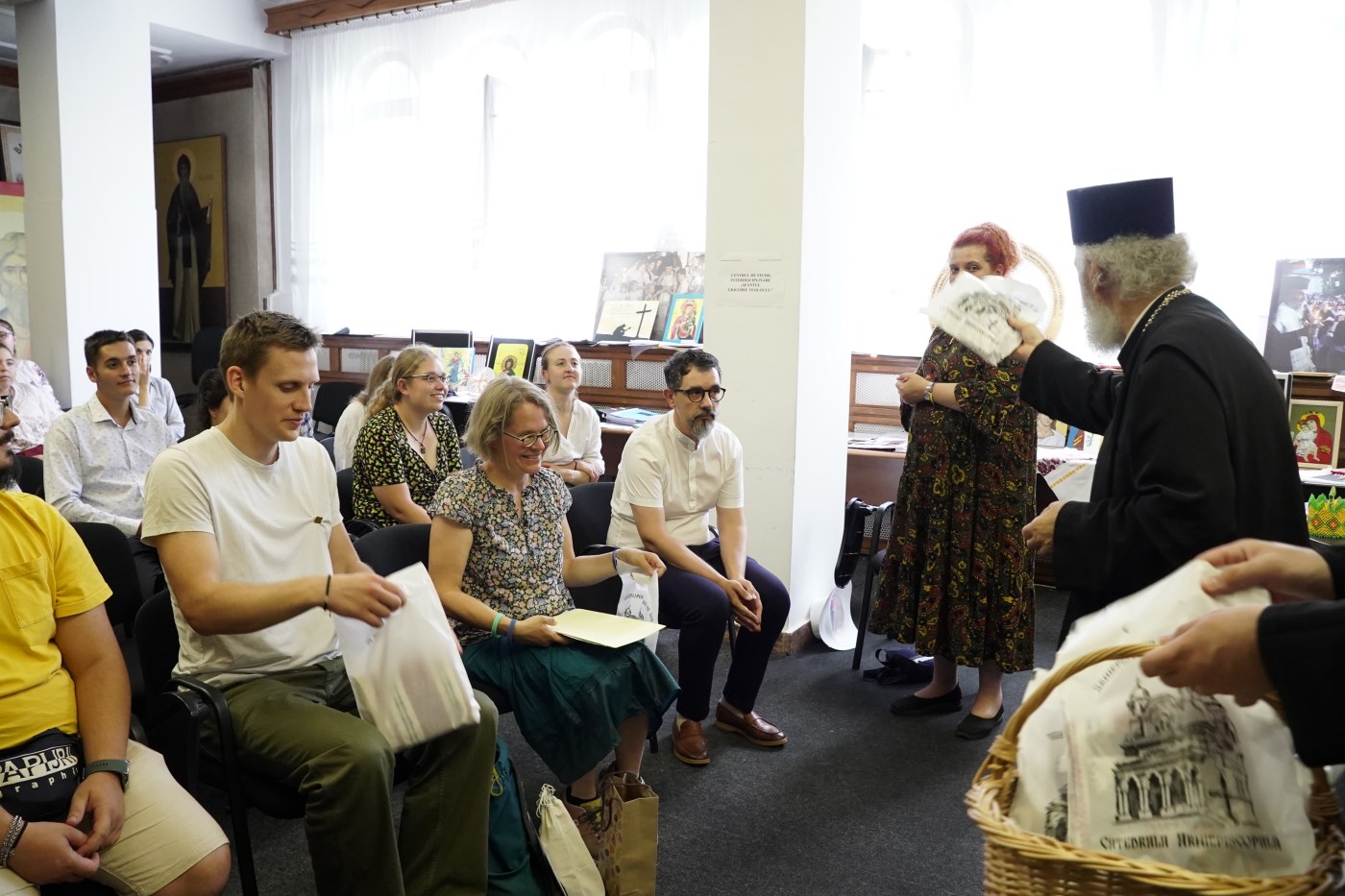 La finalul întâlnirii, ierarhul locului i-a binecuvântat pe toți și le-a oferit oaspeţilor câteva daruri tradiţionale româneşti.