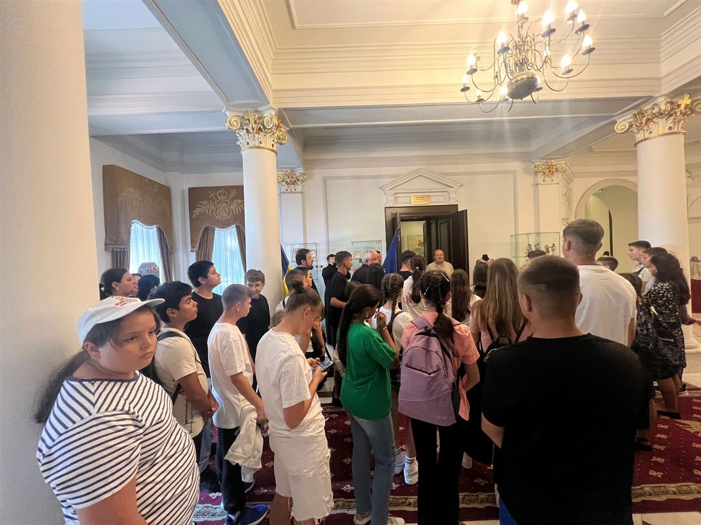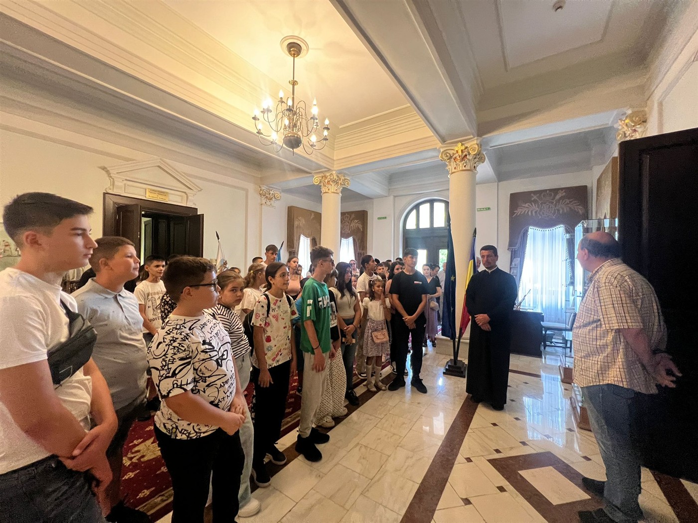 Prima oprire a fost la Catedrala arhiepiscopală din Galați, unde elevii au admirat frumusețea acesteia și s-au închinat la sfintele moaște. Au vizitat ulterior Muzeul eparhial, unde au înțeles cât de importantă este păstrarea culturii, spiritualității şi tradițiilor românești. Tot în orașul Galați elevii au vizitat şi Gradina Botanică.
