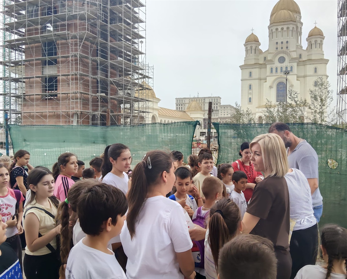 Următoarea oprire a permis grupului să admire de la exterior Casa Poporului - a doua clădire că dimensiune din lume. Încântarea celor mici a continuat și la următorul obiectiv de importanţă duhovnicească, dar și arhitecturală - Catedrala Mântuirii Neamului. Cu toții s-au închinat în Paraclisul acestui măreţ edificiu bisericesc la moaștele Sfântului Ioan Gură de Aur și la Icoana Maicii Domnului - Prodromița. O surpriză dulce a venit din partea voluntarilor Catedralei Mântuirii Neamului, care au venit în întâmpinarea grupului cu gogoși calde, după care le-au dăruit iconițe cu Maica Domnului și cu Sf. Ioan Gură de Aur.