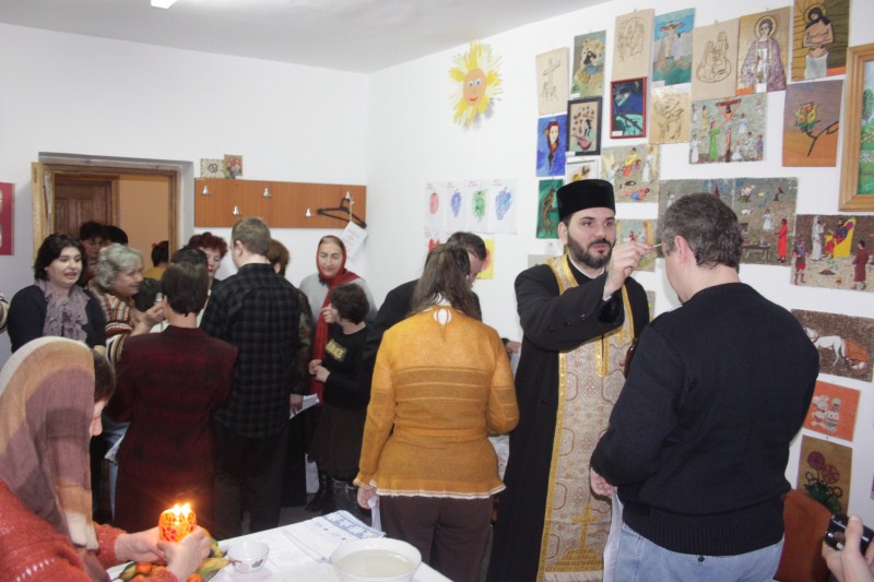 Întâlnirea a debutat prin săvârșirea slujbei de sfințire a apei, prin intermediul căreia s-au binecuvântat camerele unde tinerii cu handicap desfășoară diferite activități. S-au stropit cu aghizamă și camerele Centrului de primire a copiilor Irene și Stuart care se află în imediata apropiere.
