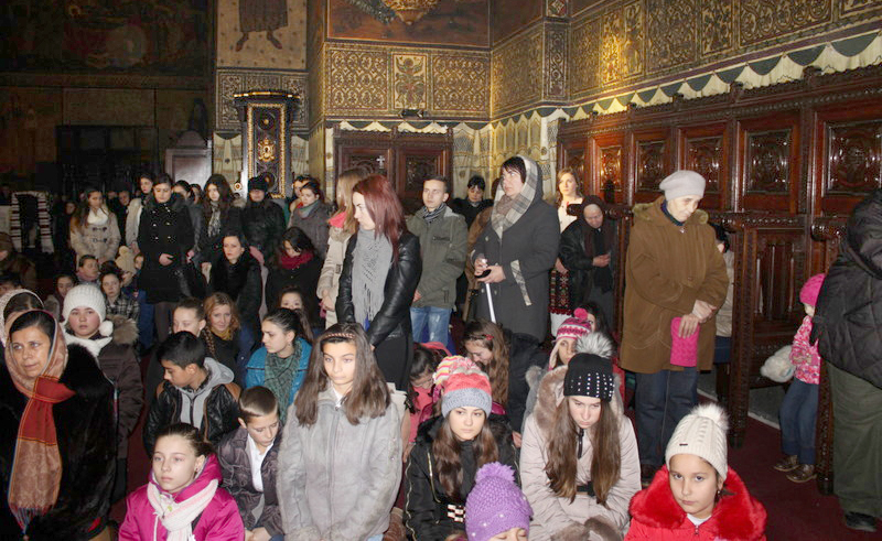 Tinerii, însoţiţi de profesorii de religie şi alte cadre didactice au participat activ la Sfânta Liturghie oferind răspunsurile liturgice la strană, iar la momentul chinonicului, împărţiţi în cete de colindători, au prezentat un impresionant concert de colinde tradiţionale.