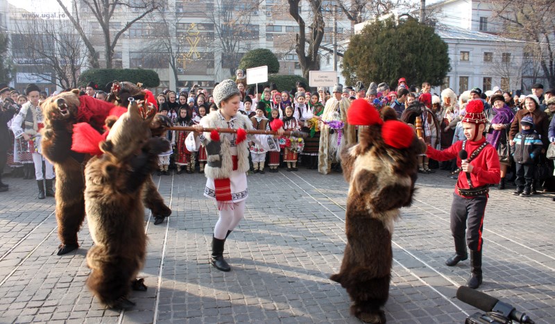 După Sfânta Liturghie, pe esplanada Catedralei arhiepiscopale a avut loc prezentarea datinilor propriu-zise. Pe lângă colindele tradiţionale de Crăciun, participanţii au încântat asistenţa cu plugul mare, capra şi ursul, steaua, tobe, buciumuri şi fluiere, fiind binecuvântaţi de chiriarhul Dunării de Jos şi primind ceai cald şi colăcei tradiţionali.
