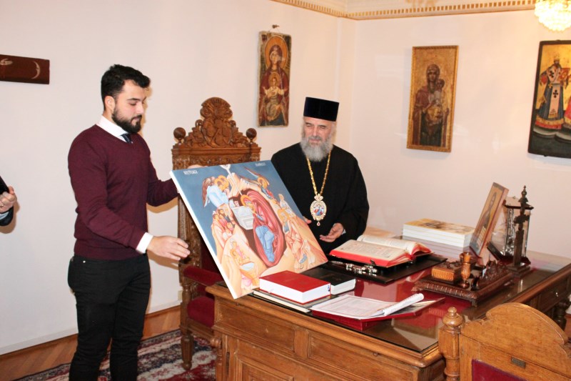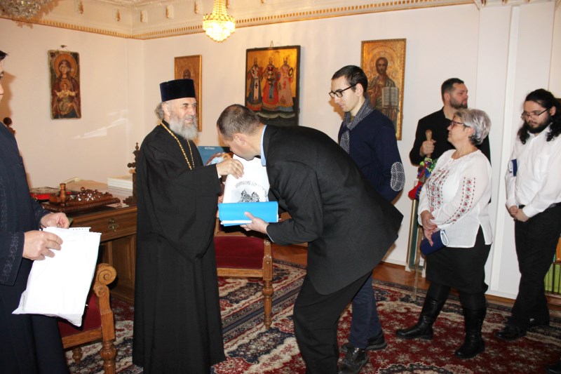 În continuare, colindătorii au mers la Centrul eparhial al Arhiepiscopiei Dunării de Jos, unde au fost primiţi de Părintele Arhiepiscop, care, după ce a ascultat colindele interpretate cu emoţie de tineri, a ţinut un cuvânt de binecuvântare şi de apreciere pentru bucuria pe care tinerii creştini o împărtăşesc în aceste zile semenilor prin frumoasele colinde româneşti.