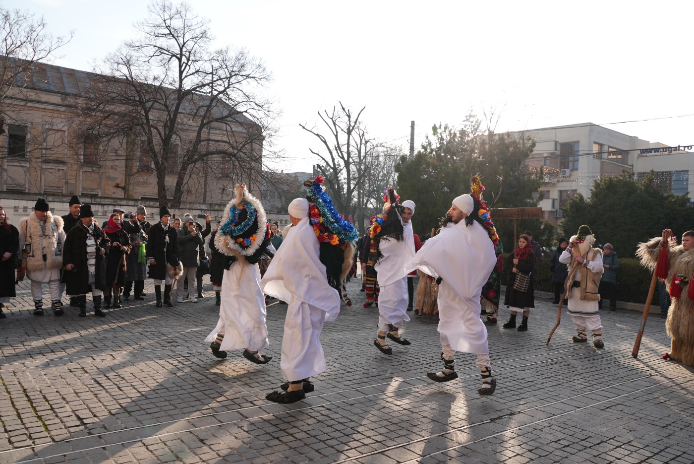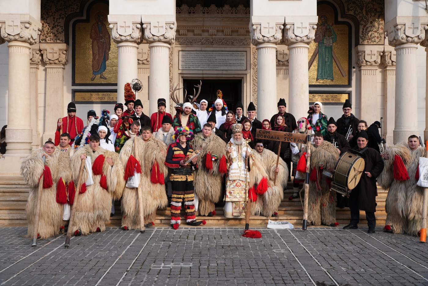 Pe lângă tradiţionalele colinde şi cântece de stea interpretate de Corul mixt al Catedralei şi de ceilalţi colindători în locaşul de cult, membrii grupurilor folclorice şi cetele de colindători au încântat asistenţa şi pe esplanada Catedralei arhiepiscopale cu alte urături şi jocuri tradiţionale cu tobe şi fluiere.