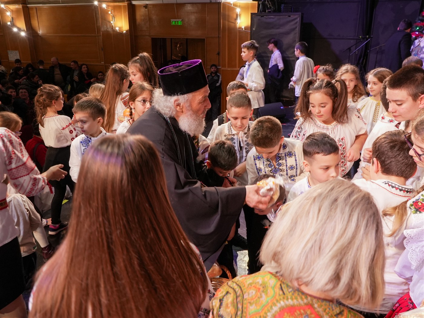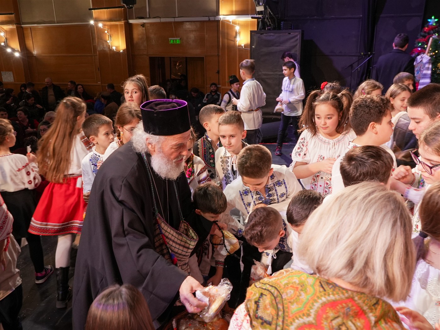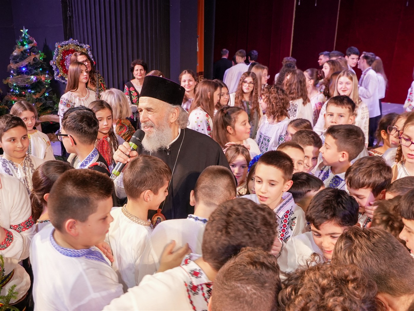 La finalul serbării, Părintele Arhiepiscop a urcat pe scenă, unde a cântat colinde împreună cu micii seminarişti şi a avut un dialog interactiv cu aceştia.