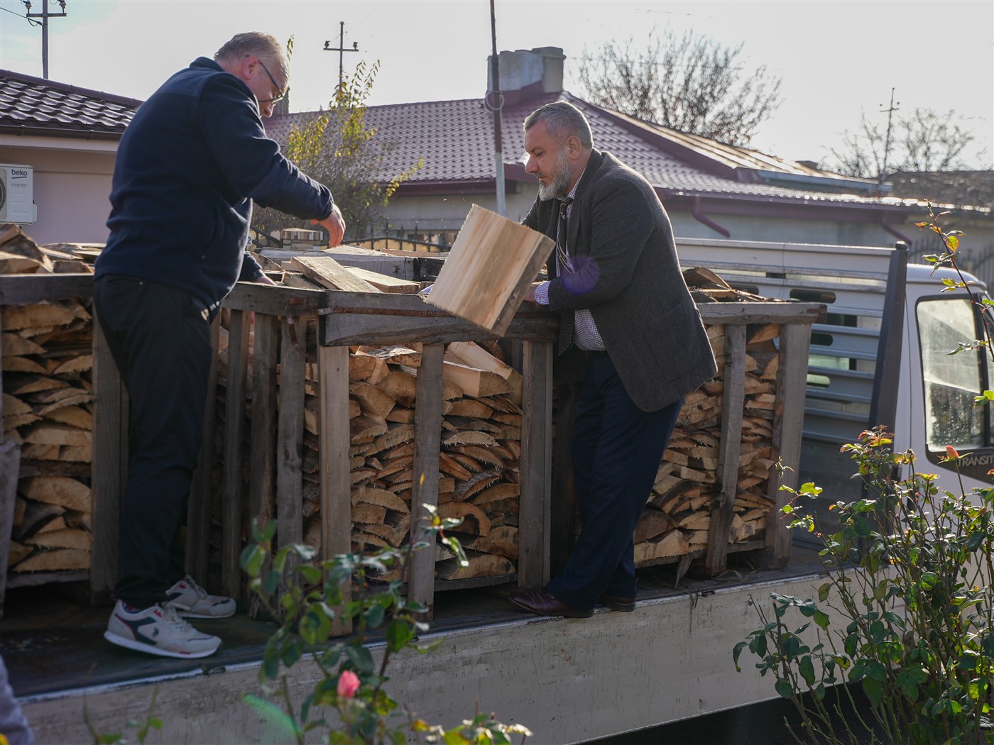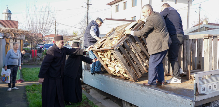 Fapta cea bună a continuat şi astăzi, când 25 de familii au primit din partea parohiei lemne pentru iarnă şi alimente necesare pentru masa de sfintele sărbători.