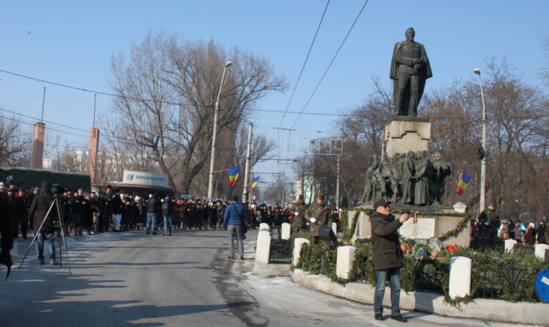 Evenimentul a continuat la statuia lui Alexandru Ioan Cuza, situată în imediata apropiere a Palatului Episcopal, unde au avut loc manifestări omagiale, după care s-au rostit alocuţiuni despre importanţa acestui moment istoric.
