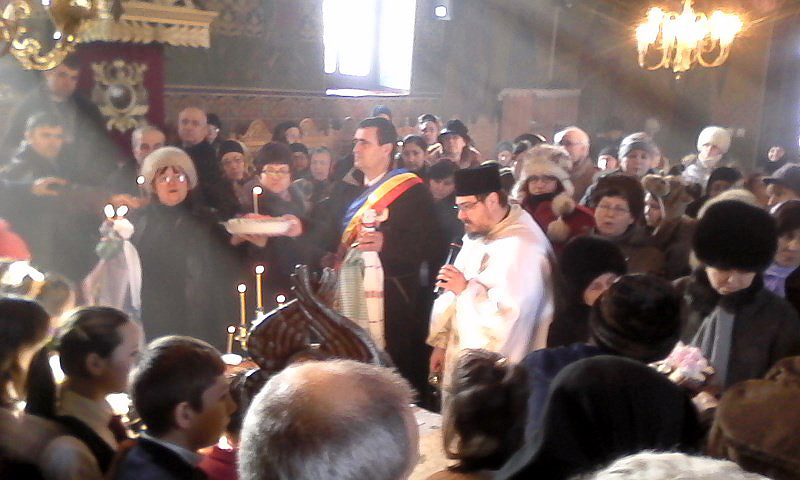 Începând cu ora 12,00 chiriarhul locului, înconjurat de un sobor de preoţi şi diaconi, a săvârşit slujba de Te-Deum la biserica Vovidenia, care era frecventată de familia Cuza în urmă cu mai bine de 150 de ani şi unde a fost înmormântată mama domnitorului.