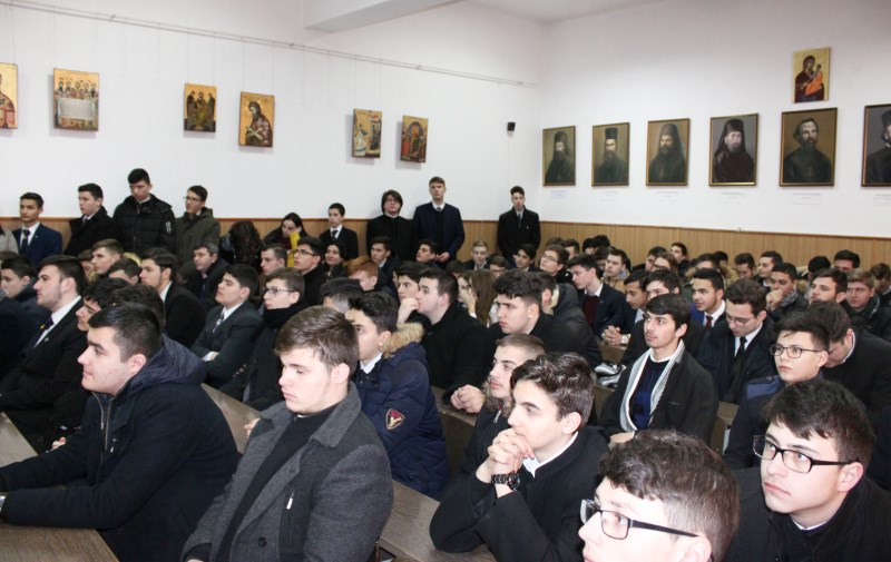 Evenimentul a continuat în Sala de Conferinţe a Seminarului gălăţean, unde Chiriarhul Dunării de Jos a ţinut un cuvânt de omagiere a poetului naţional Mihai Eminescu.