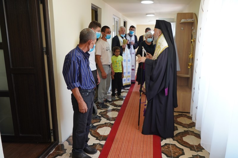 Întregul efor depus pentru ridicarea locuinţei a fost încununat de slujba de sfinţire oficiată de Înaltpreasfinţitul Părinte Casian, şi de cuvintele de încurajare adresate cu acest prilej celor 7 copii şi tătălui lor.