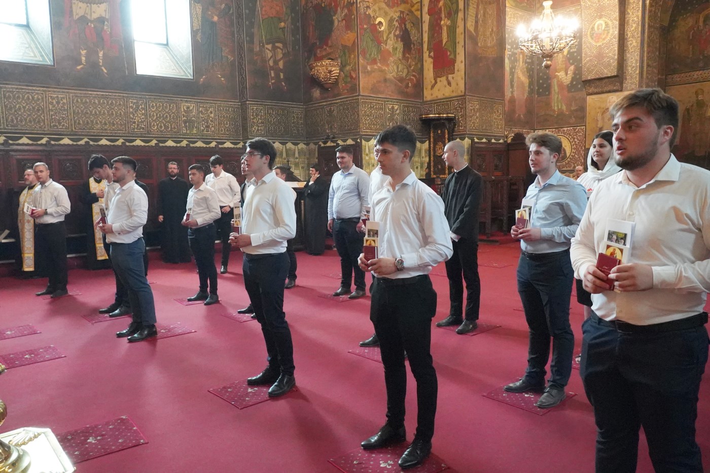 Programul a debutat în Catedrala Arhiepiscopală cu o slujbă de mulţumire săvârşită de chiriarhul Dunării de Jos, Înaltpreasfinţitul Părinte Arhiepiscop Casian, la care au participat 16 absolvenţi ai Seminarului Teologic Ortodox „Sfântul Andrei“ din Galaţi, însoţiţi de preotul spiritual al şcolii şi preotul diriginte al acestei promoţii.