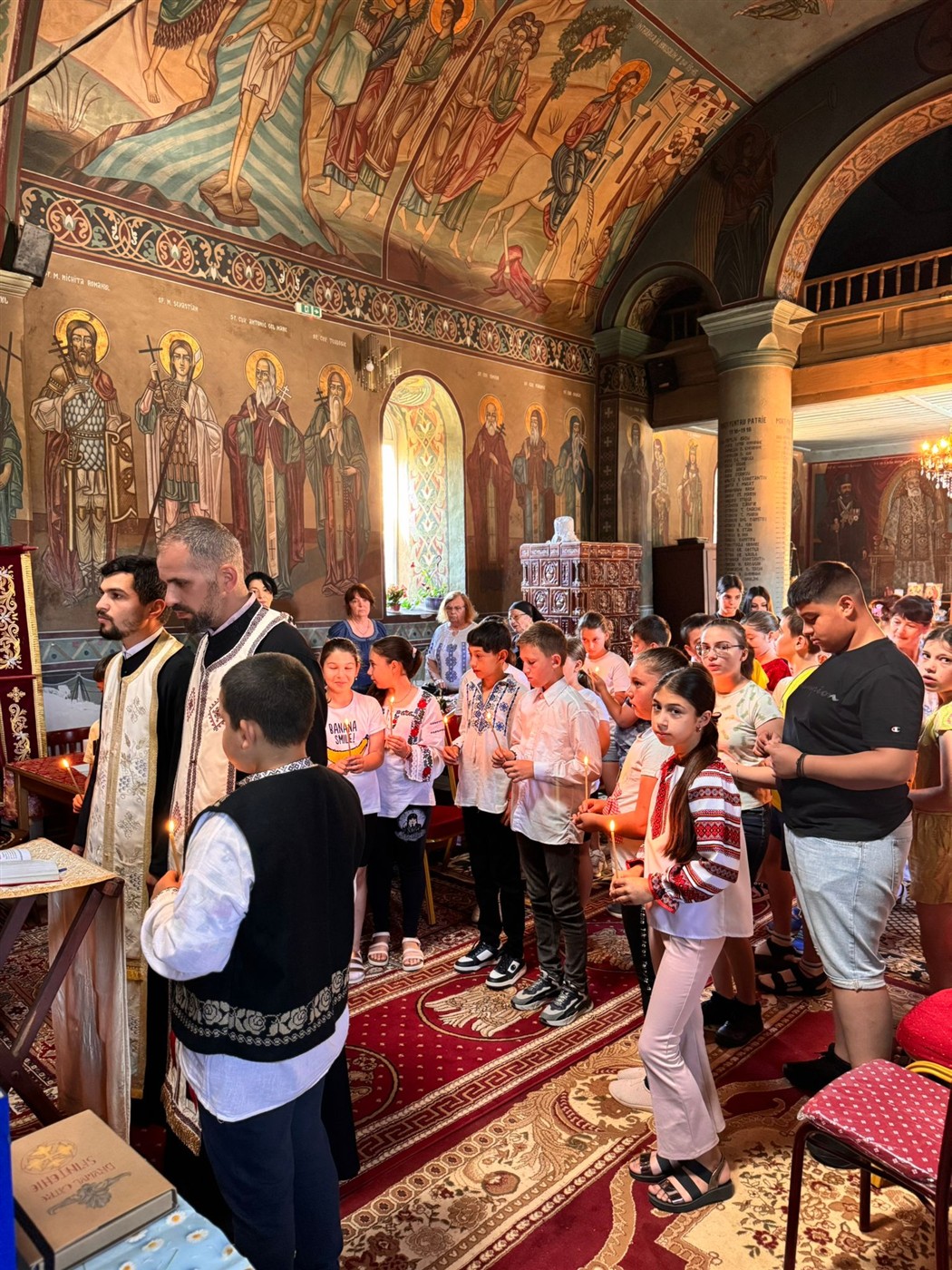 În continuare, în curtea bisericii copiii s-au prins cu bucurie în horă, acompaniați instrumental, iar apoi au urmat jocuri de mișcare – cu mingi, corzi de sărit și alte activități recreative, desfășurate într-o atmosferă de voie bună și prietenie.