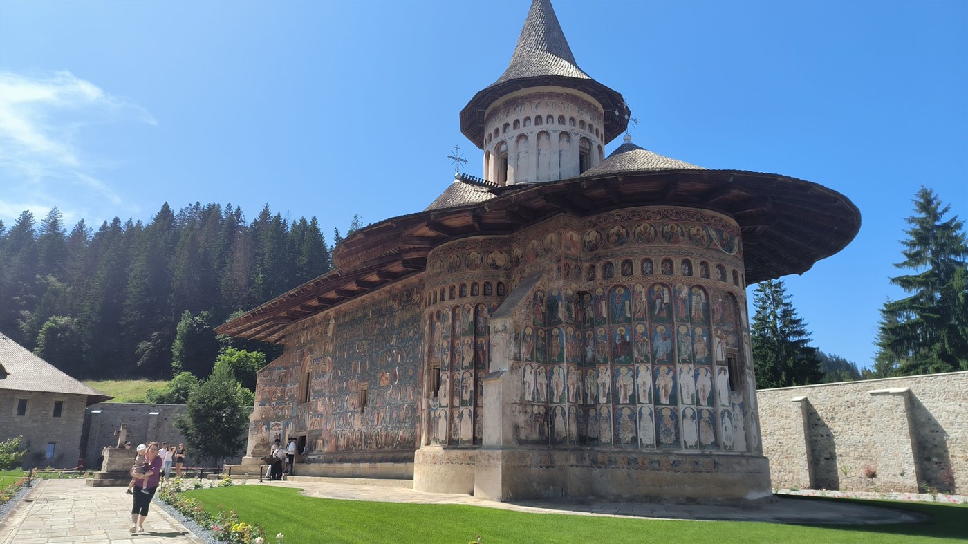 In prima zi ne-am închinat moaștelor sfântului Teodosie de la mănăstirea Brazi, apoi am admirat frumusețea arhitecturală și iconografică a mănăstirii Voroneț!