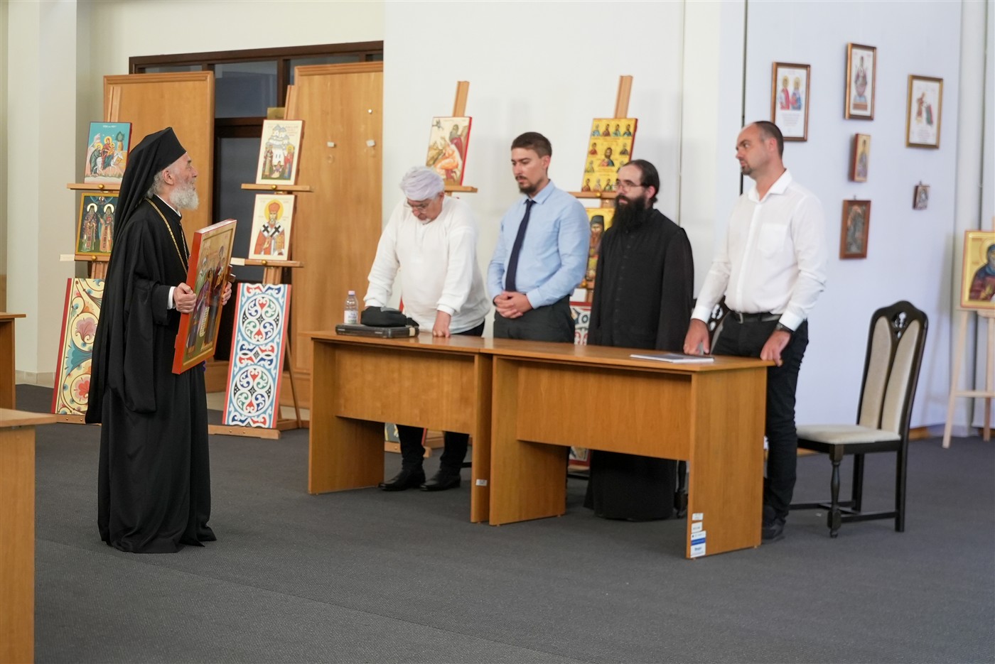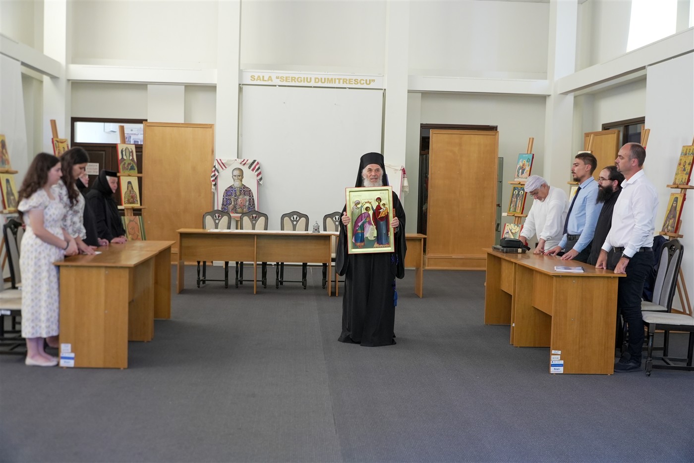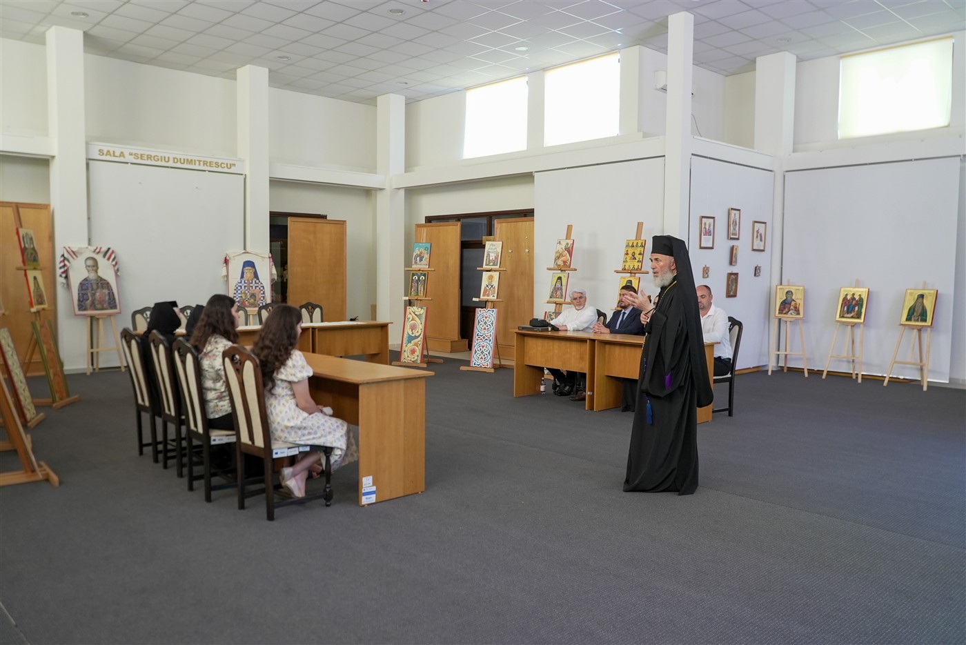 Ierarhul Dunării de Jos i-a binecuvântat pe toţi cei prezenţi şi a apreciat lucrările realizate cu multă pricepere şi migală de absolvenţii acestei promoţii expuse în Sale de expoziţii temporare ”Sergiu Dumitrescu”.
