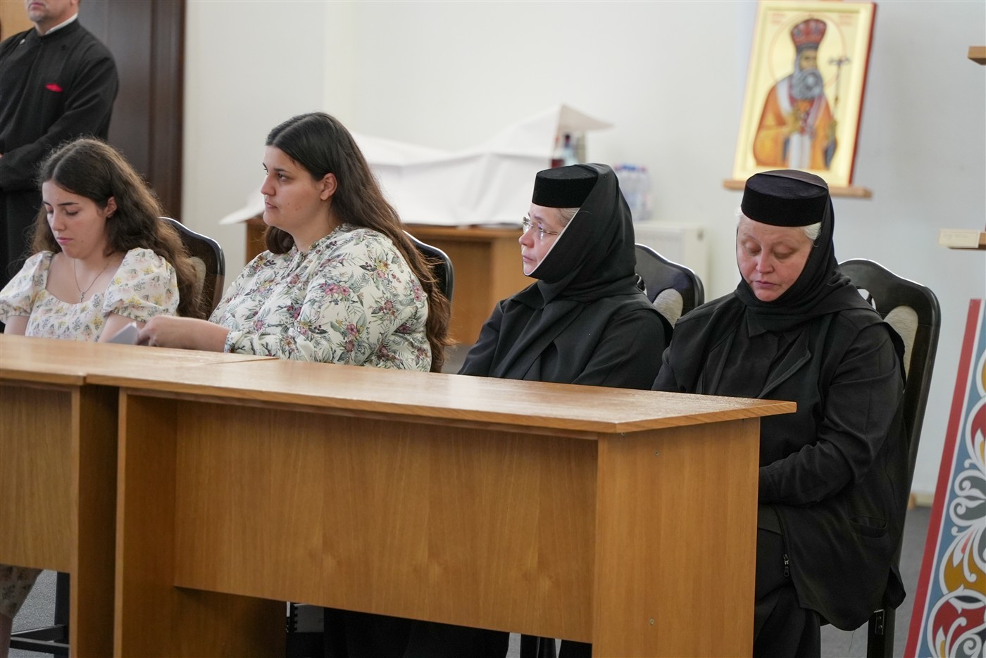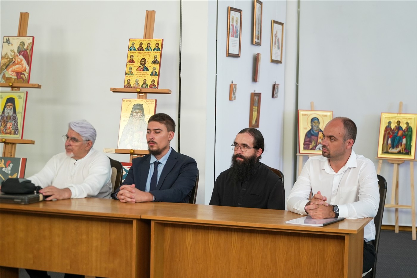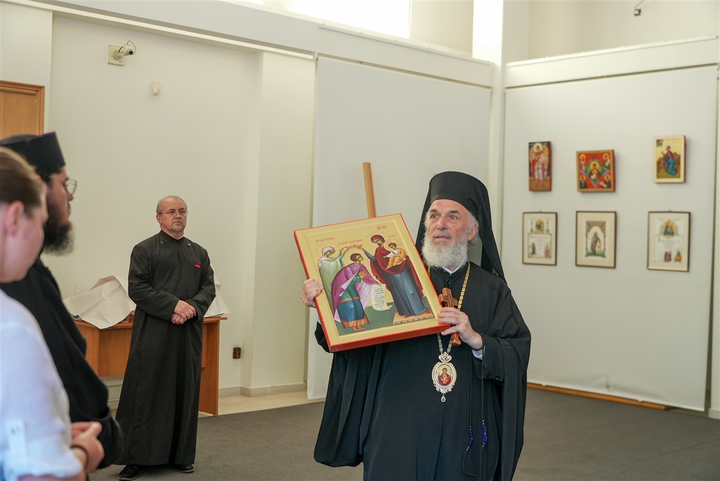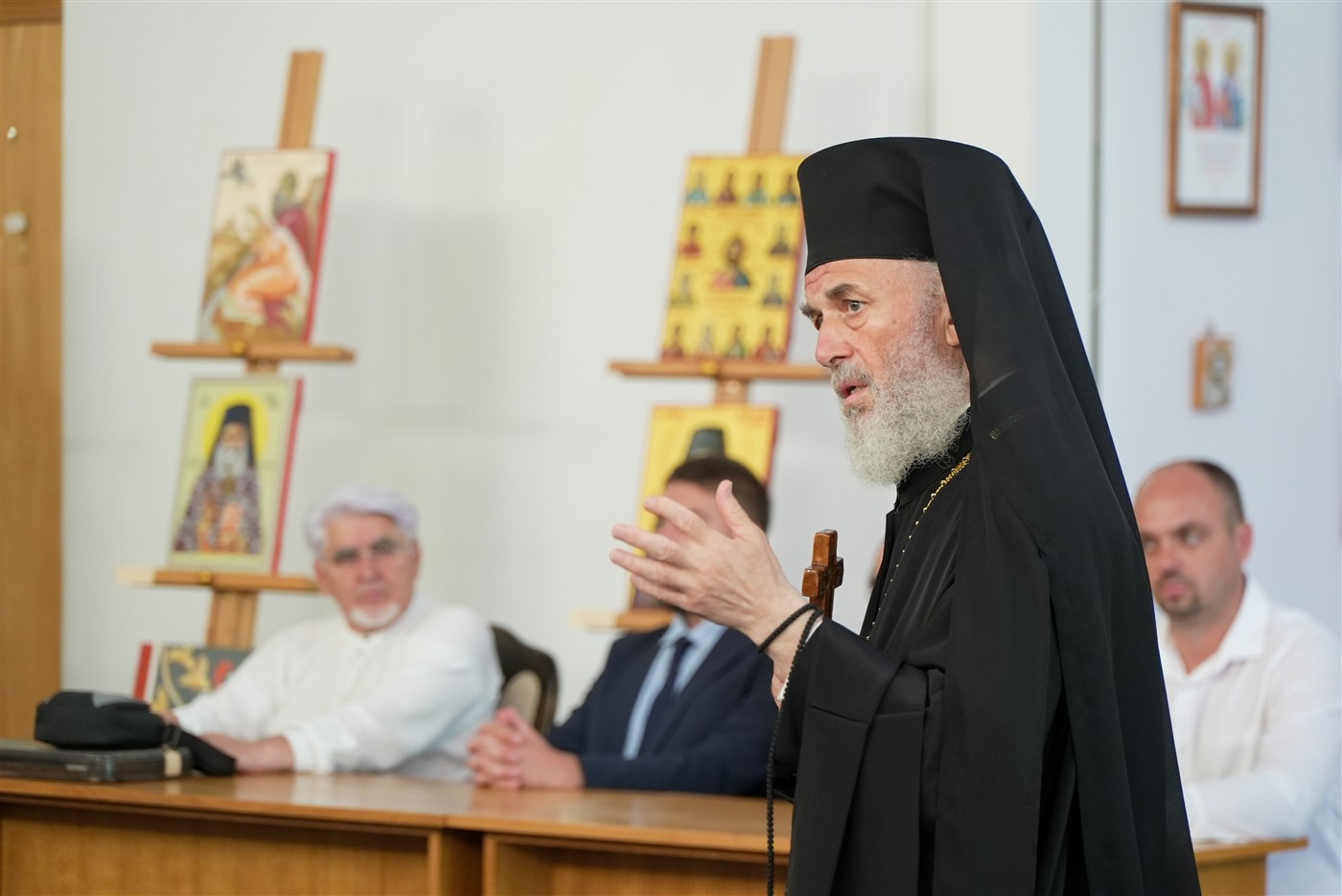 În continuare, toţi cei prezenţi au mers în Capela din incinta Muzeului eparhial, unde, ierarhul locului a săvârşit o slujbă de mulţumire pentru binefacerile revărsate de Dumnezeu asupra profesorilor şi cursanţilor Facultăţii de Istorie, Filosofie şi Teologie din Galaţi şi a prezentat pictura din acest locaş de cult.