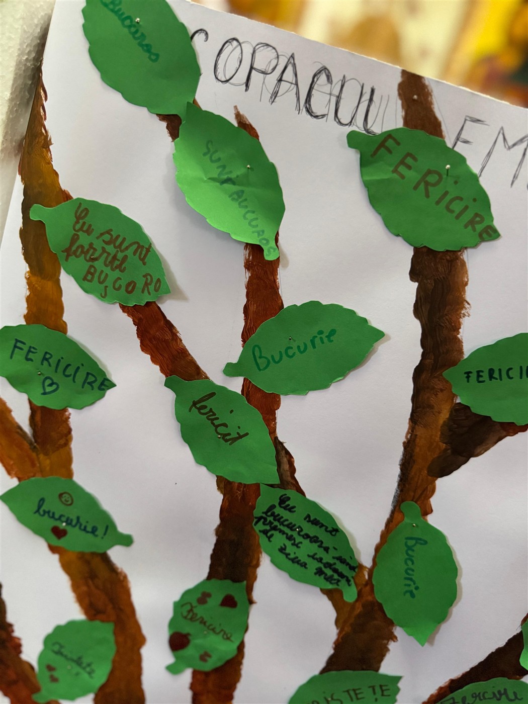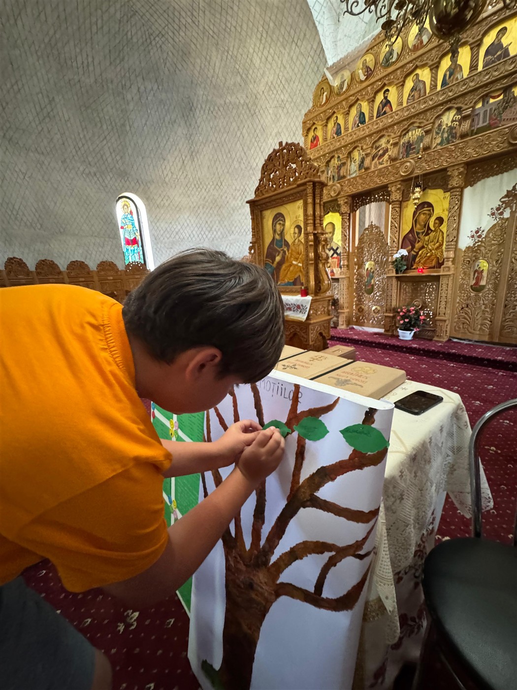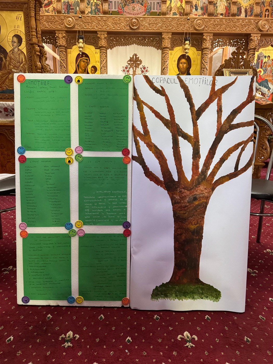 Au urmat activități creative, sub coordonarea doamnei preotese Geanina Vlad, activități prin care tinerii au aflat ce sunt emoțiile, la ce ajută și cum pot fi controlate. În același timp, elevii au alcătuit copacul emoțiilor unde fiecare a scris pe o frunză ce emoție a simțit în urma activităților desfășurate în biserică. Ulterior toate frunzele au fost lipite în copacul pictat de ei.