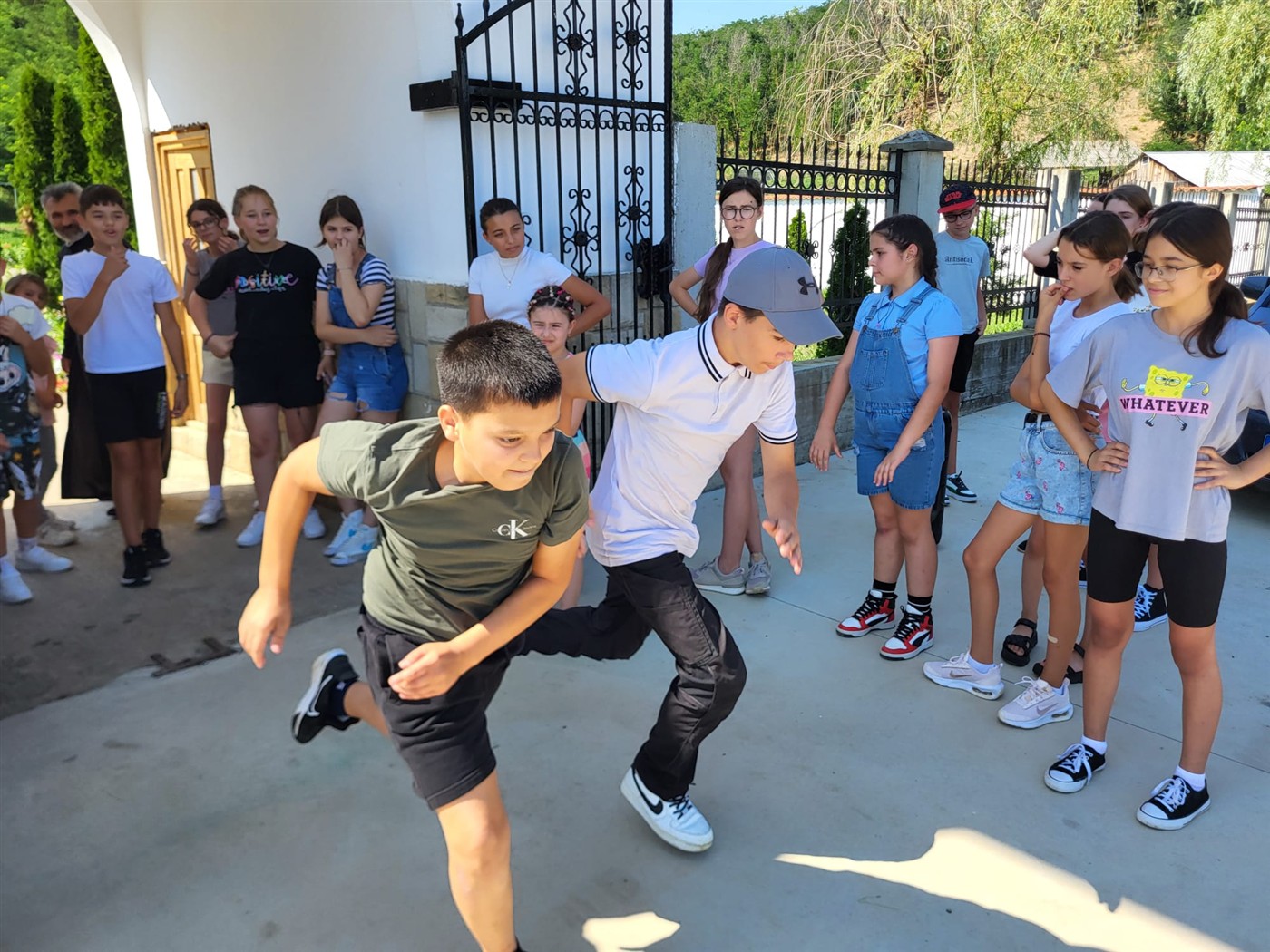 După masă, activităţile au continuat cu prezentarea de cărți, coordonată de către bibliotecarul comunei Corod şi cu învăţarea mai multor mişcări din dansul popular românesc sub coordonarea unui coregraf din Parohia Movilenii de Sus.