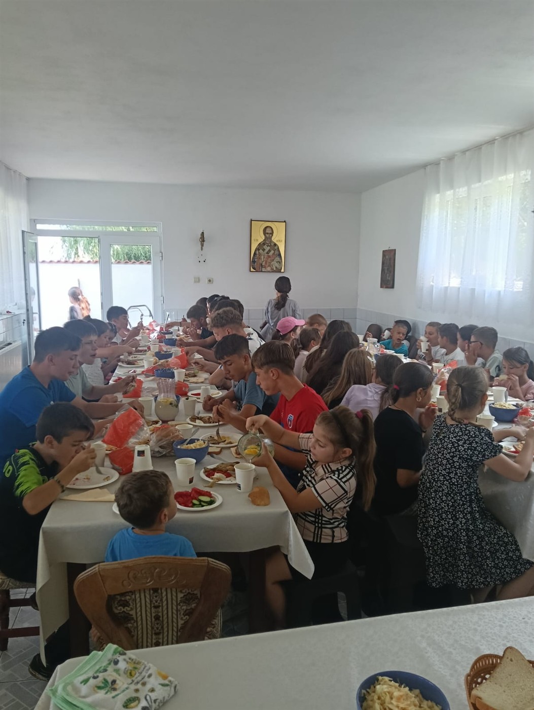 La masa de prânz, copiii au servit bucate tradiţionale proaspăt preparate de către gazde şi organizatori.
