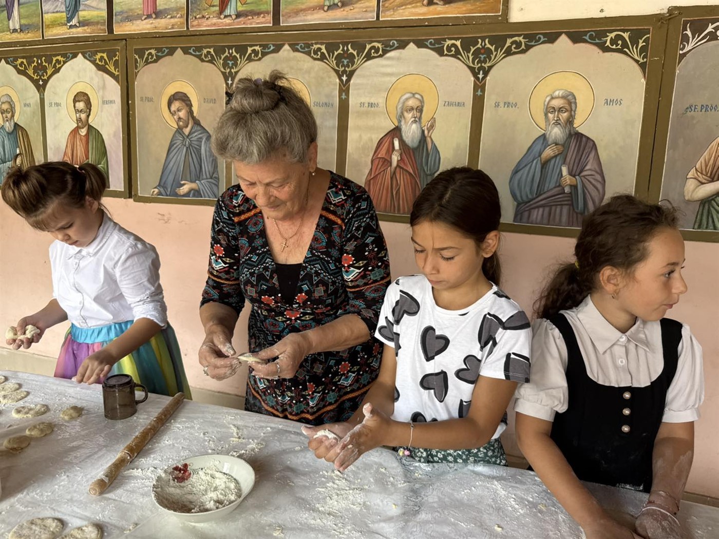 -𝐀𝐭𝐞𝐥𝐢𝐞𝐫𝐮𝐥 𝐝𝐞 𝐟𝐫𝐚̆𝐦𝐚̂𝐧𝐭𝐚𝐭 𝐬̦𝐢 𝐜𝐨𝐩𝐭, în cadrul căruia, copiilor le-a fost prezentată rețeta tradițională pentru gogoși. Ei au surprins toate etapele: ordinea adăugării ingredientelor, frământatul, modelatul aluatului și coptul acestuia.