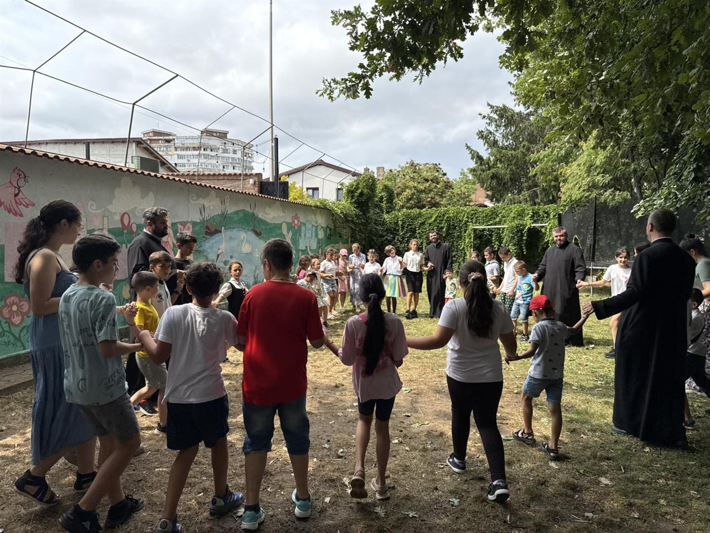 -𝐀𝐭𝐞𝐥𝐢𝐞𝐫𝐮𝐥 𝐝𝐞 𝐣𝐨𝐜𝐮𝐫𝐢 𝐬̦𝐢 𝐝𝐚𝐧𝐬: în cadrul acestui atelier, copiii au fosti implicați în diverse jocuri de teren și au învățat un dans popular moldovenesc. Atenți la indicațiile date, aceștia au prins ritmul și pașii, astfel încât, la final, toți s-au prins în horă în curtea așezământului.