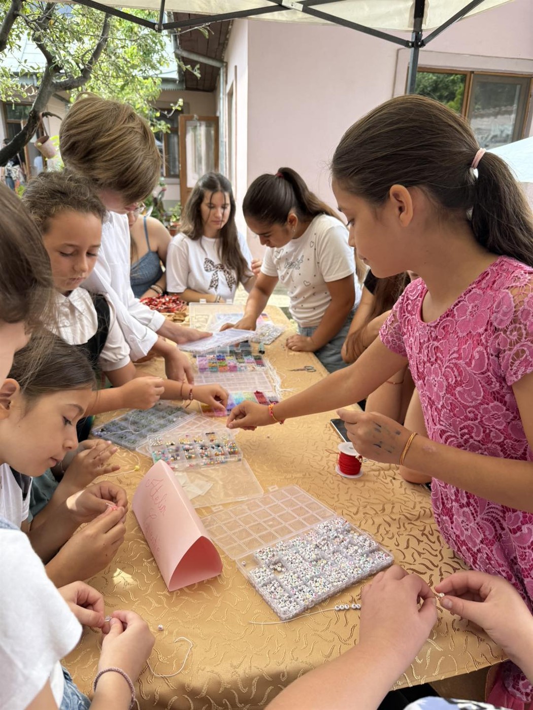 -𝐀𝐭𝐞𝐥𝐢𝐞𝐫𝐮𝐥 𝐝𝐞 𝐜𝐫𝐞𝐚𝐭̦𝐢𝐞 𝐛𝐫𝐚̆𝐭̦𝐚̆𝐫𝐢, unde copiii au învățat să confecționeze brățări și metaniere și să le personalizeze cu numele lor.