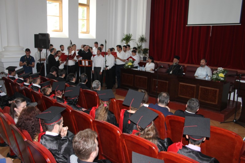 Sfânta Liturghie a fost urmată de săvârşirea slujbei de Te-Deum, ca mulţumire pentru toate binefacerile primite de la Dumnezeu, după care, în Aula Facultăţii de Istorie, Filosofie şi Teologie s-a desfăşurat, sub preşedenţia Înaltpreasfinţitului Părinte Casian, Arhiepiscopul Dunării de Jos, cursul festiv al absolvenţilor de teologie didactică şi teologie asistenţă socială, precum şi a masteranzilor, în prezenţa cadrelor didactice.