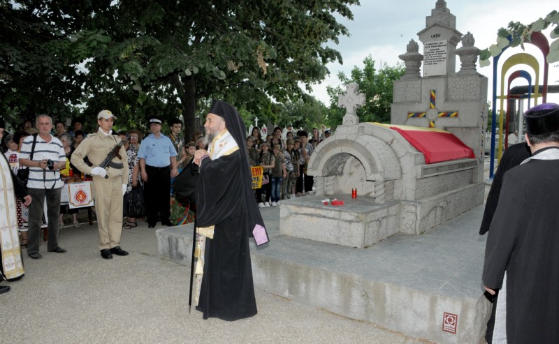 După rugăciunea de mulţumire, alaiul a pornit către Cimitirul „Eternitatea“, la Monumentul închinat Eroilor Neamului, unde a fost săvârşită cuvenita slujbă de pomenire. După evocarea semnificaţiei Zilei Eroilor, au fost depuse jerbe și coroane de flori, urmate de defilarea gărzii de onoare în acordurile muzicii militare.